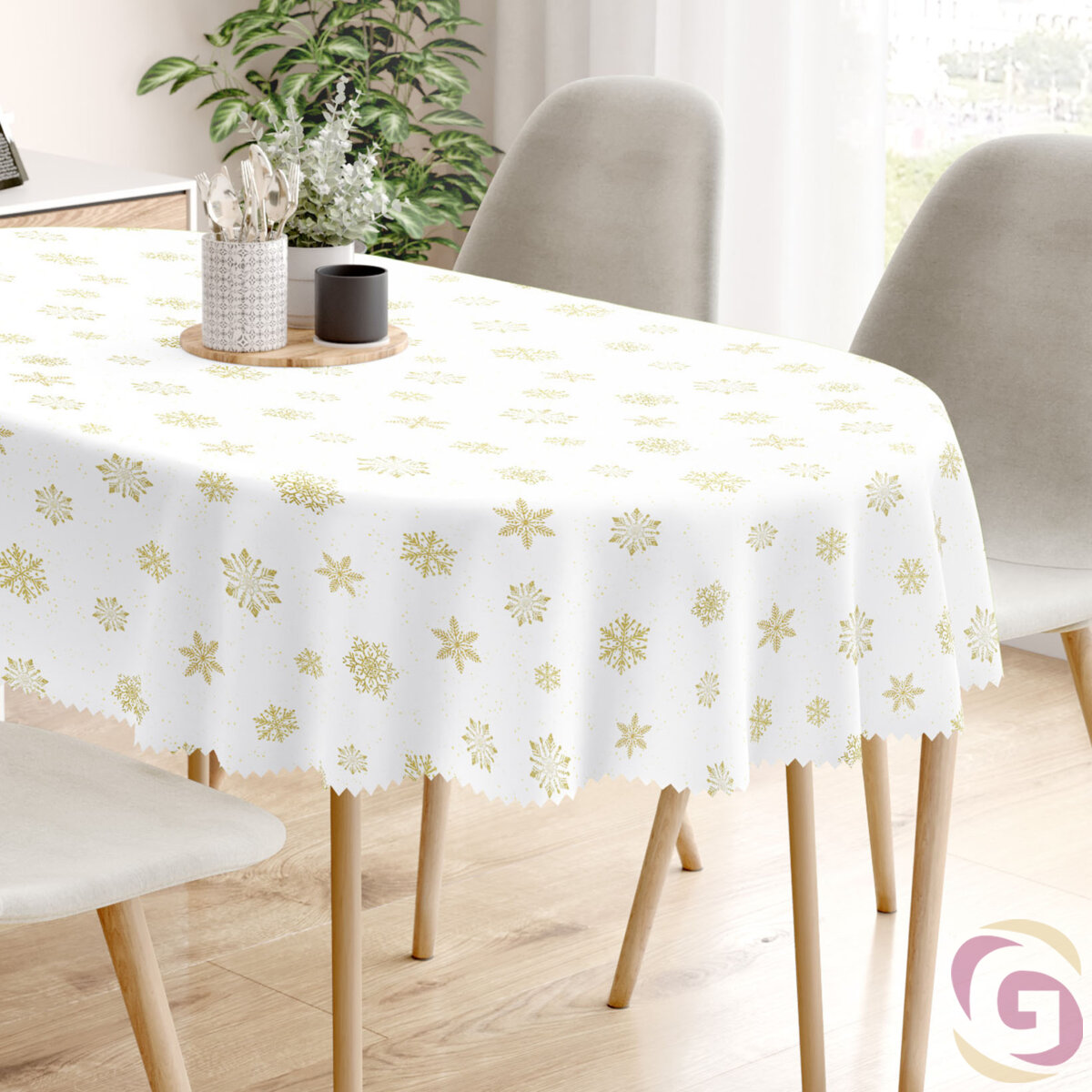 Ovale Weihnachts-Tischdecke Teflon - Goldene Schneeflocken