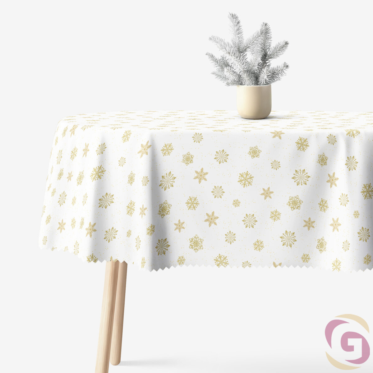 Runde Weihnachts-Tischdecke Teflon - Goldene Schneeflocken