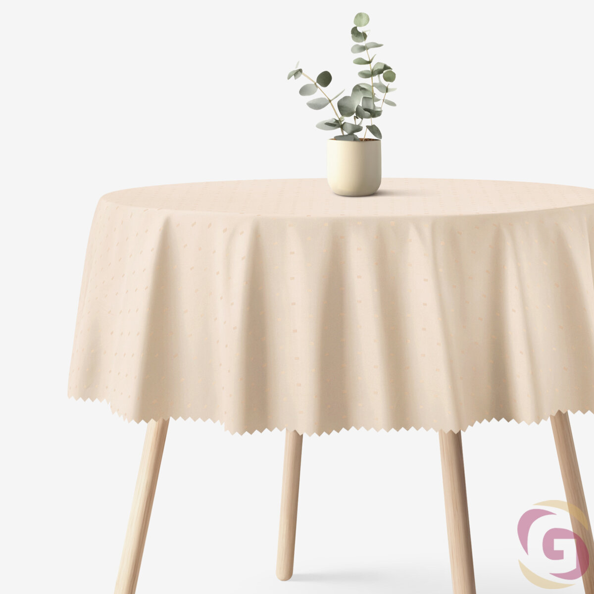 Runde festliche Teflon-Tischdecke - champagne mit glänzenden Rechtecken
