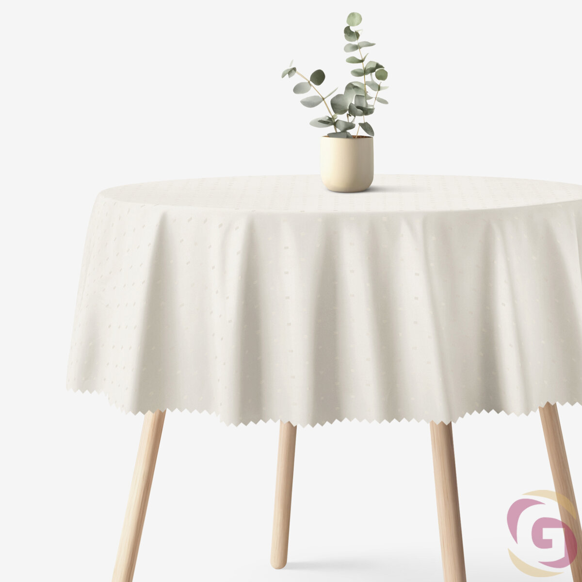 Runde festliche Teflon-Tischdecke - creme mit glänzenden Rechtecken