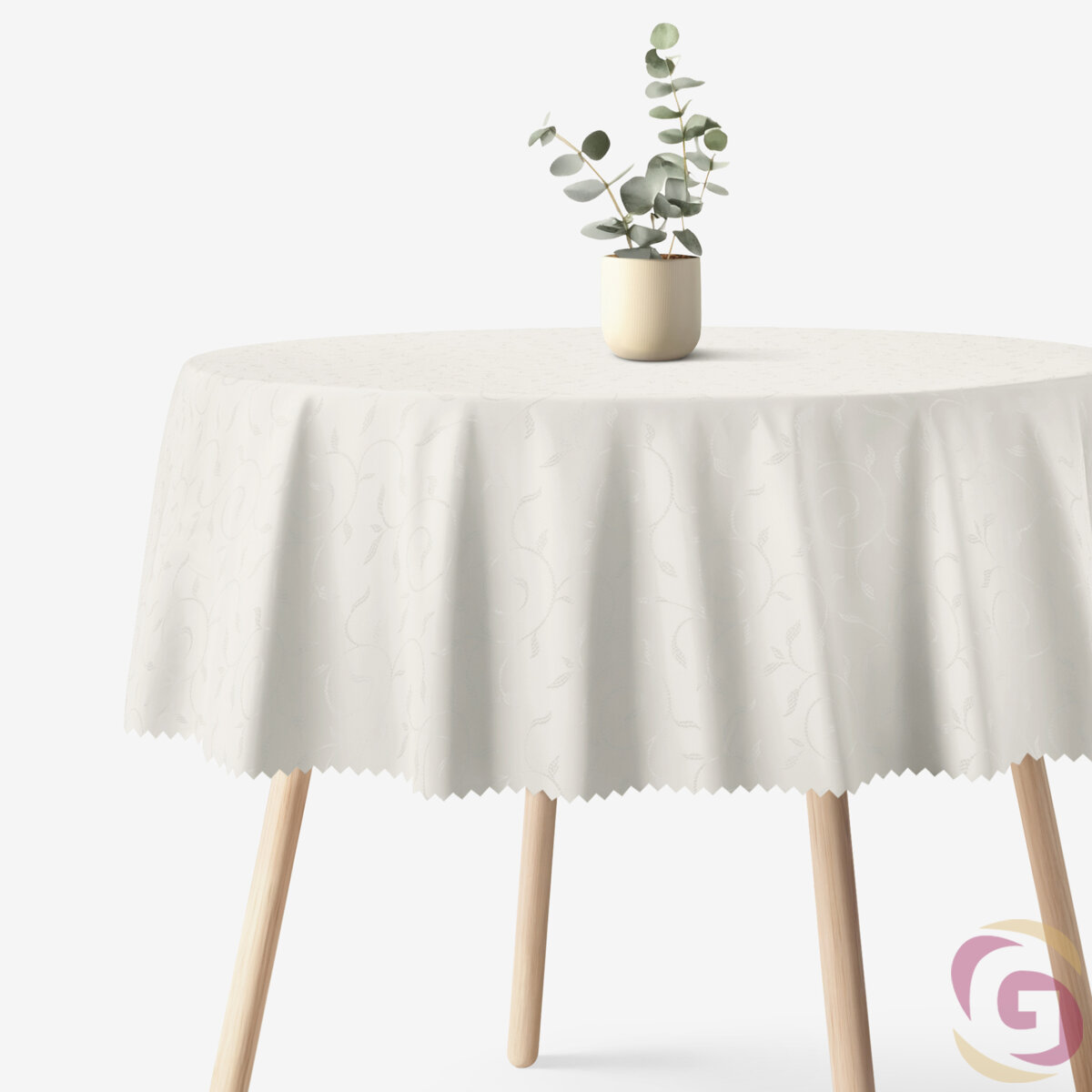 Runde festliche Teflon-Tischdecke - creme mit großen Ornamenten