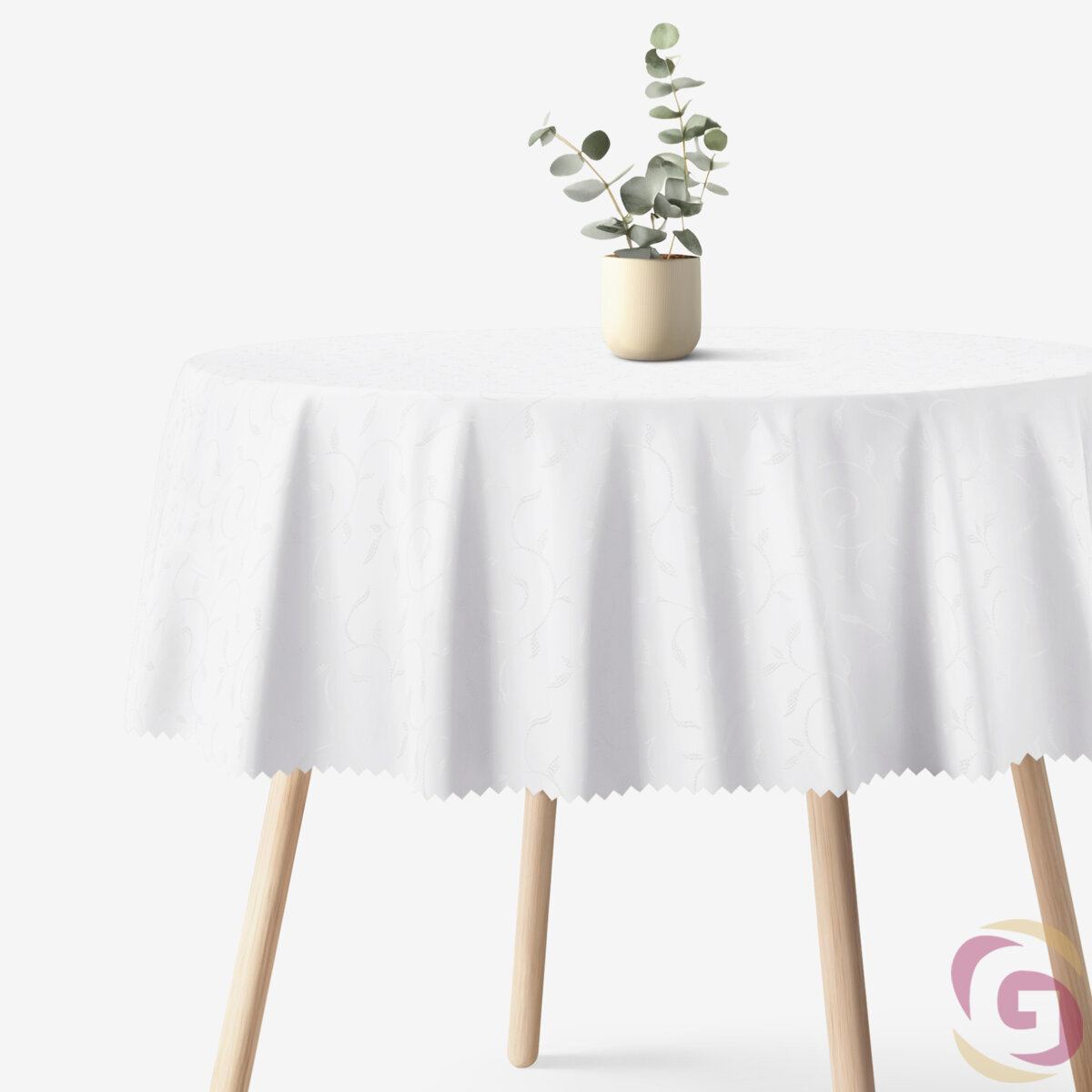 Runde festliche Teflon-Tischdecke - weiß mit großen Ornamenten