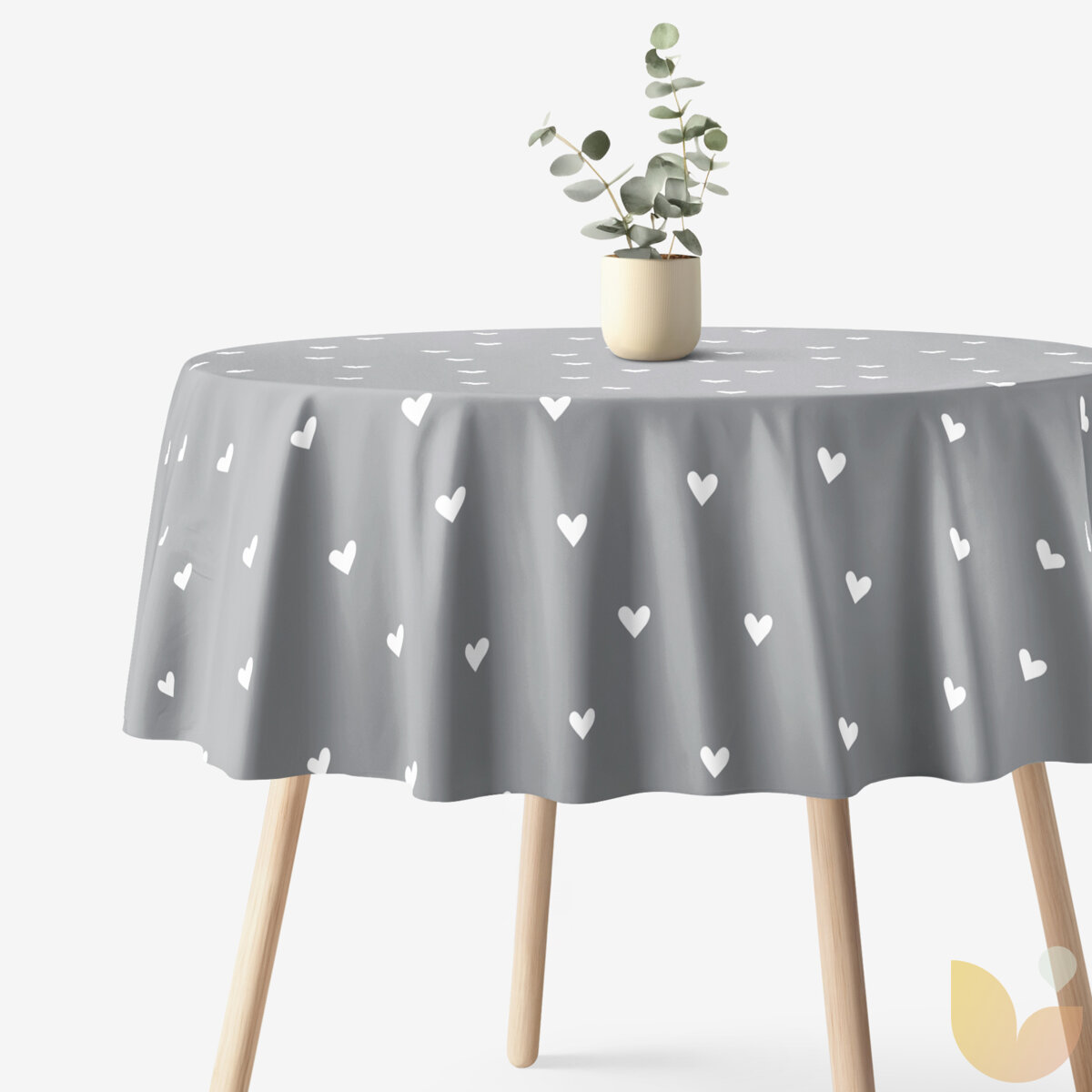 Runde Tischdecke 100% Baumwolle - Herzchen auf Grau