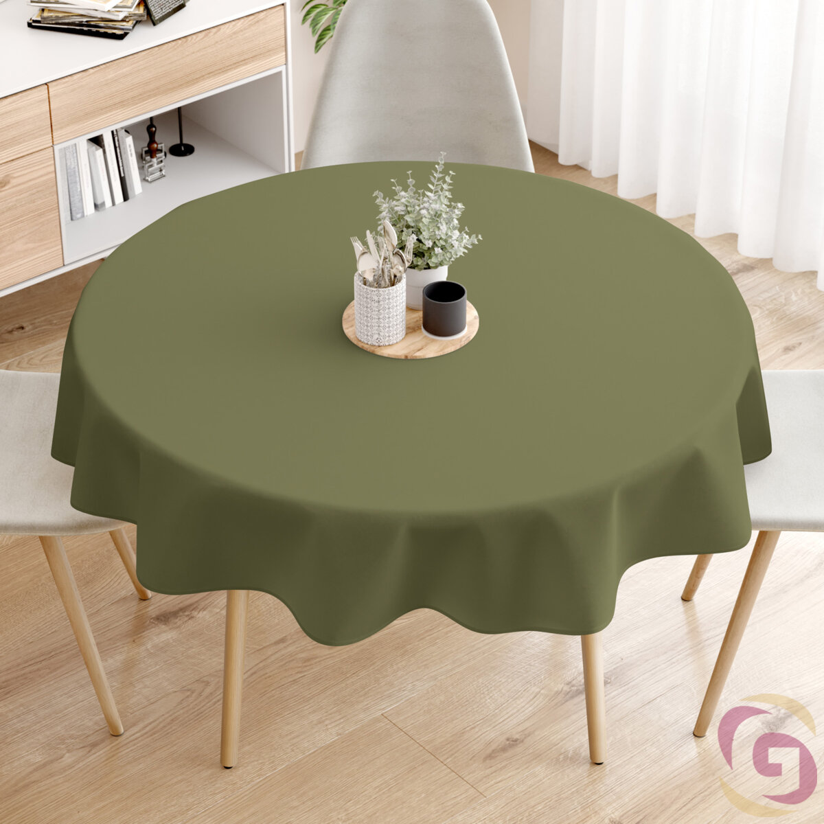 Runde Tischdecke 100% Baumwolle - olivgrün