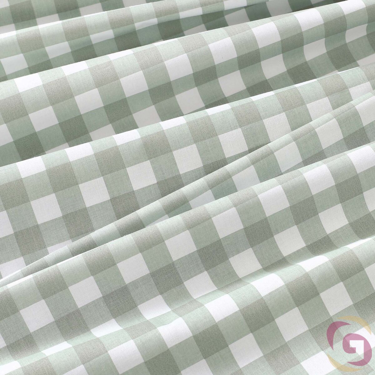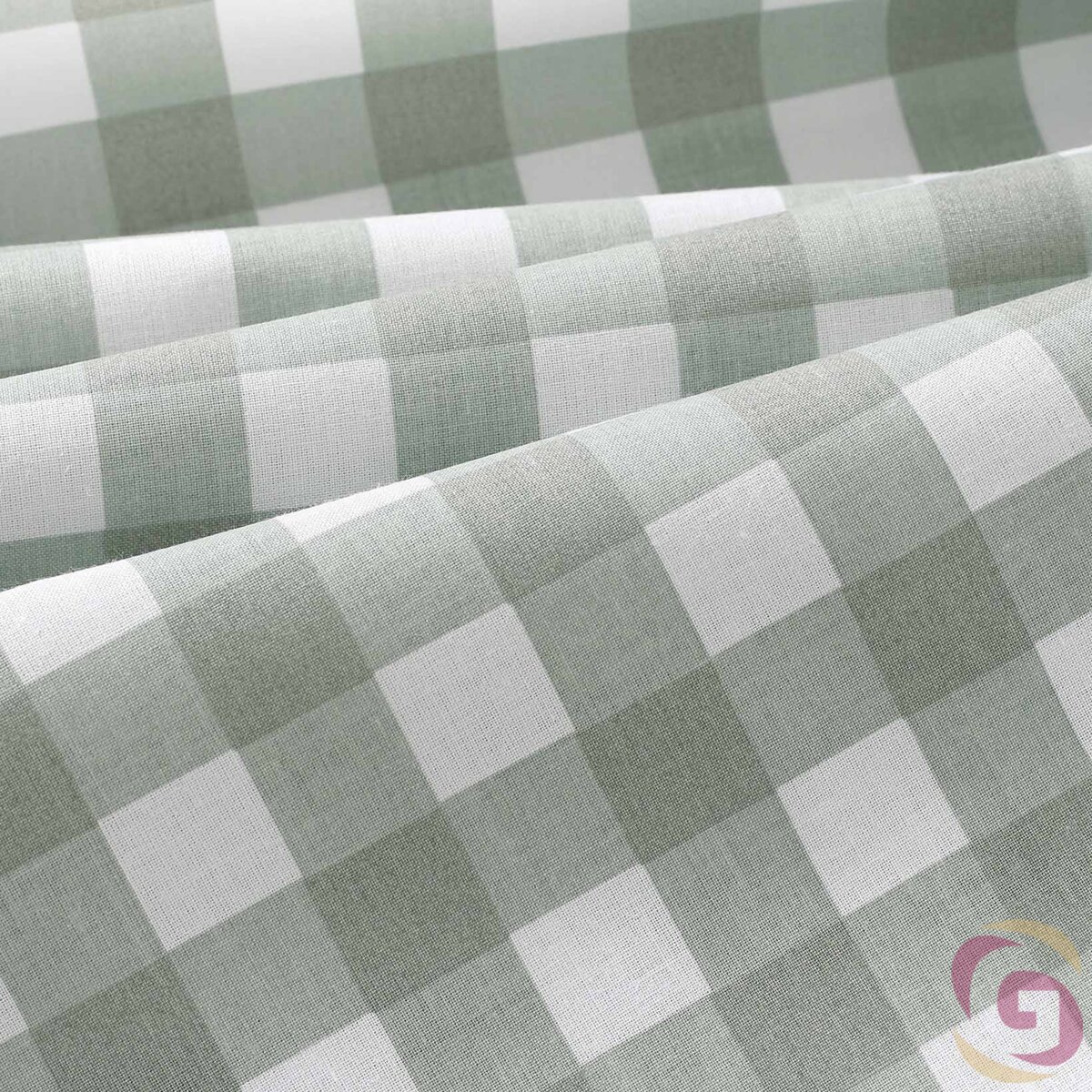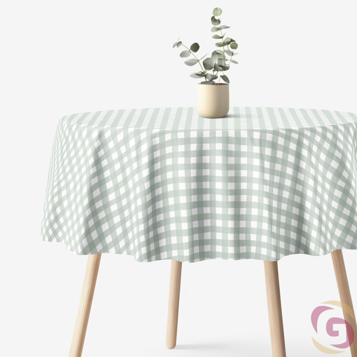Runde Tischdecke 100% Baumwolle - Salbeigrüne Würfel