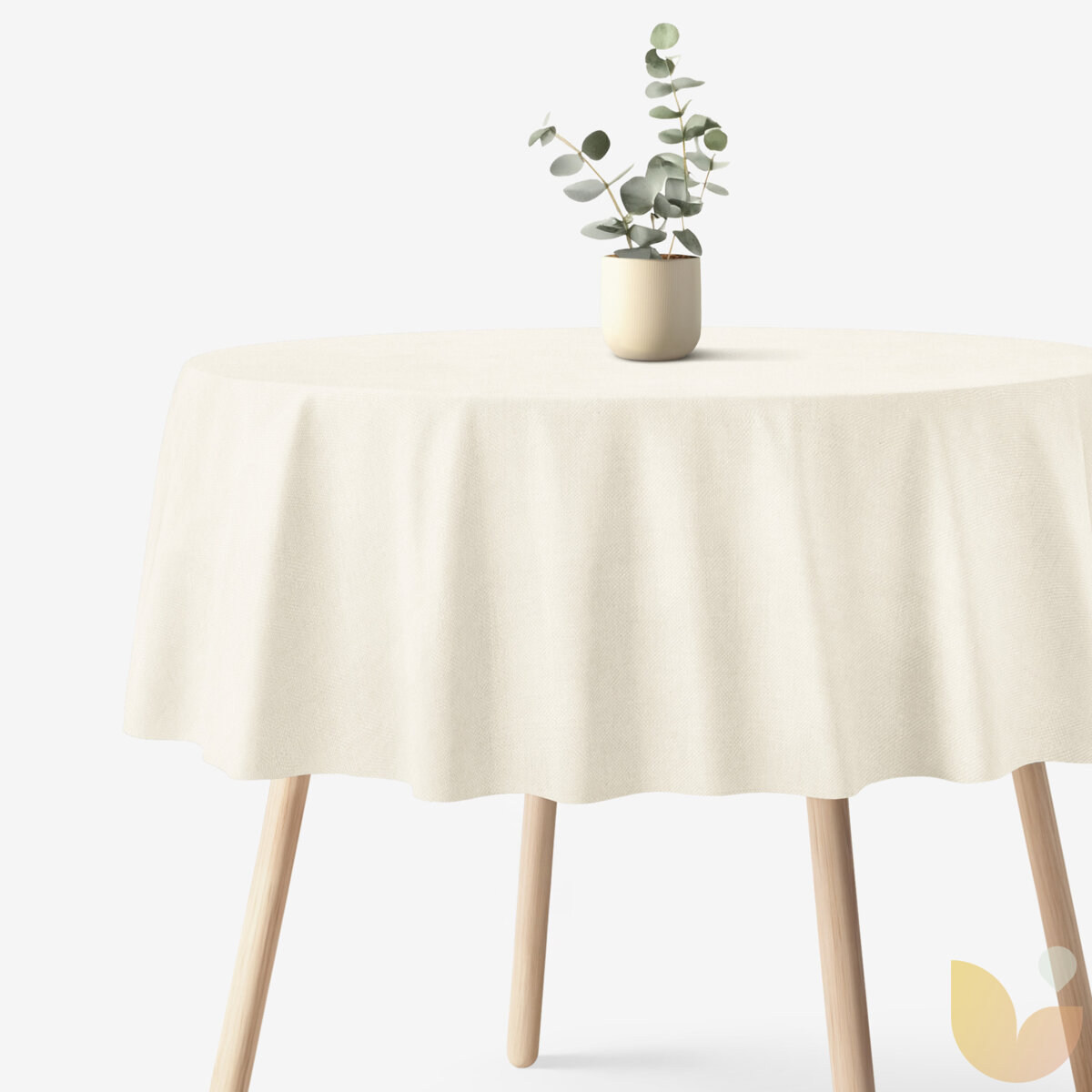 Das Tischtuch sollte auf jeder Seite mindestens 15-20 cm über die Tischkante hinausragen. Wenn Sie einen runden Tisch mit einem Durchmesser von 90 cm haben, empfehlen wir, eine Tischdecke mit einem Durchmesser von mindestens 120-130 cm zu kaufen. Es kommt jedoch immer darauf an, wo Sie die Tischdecke verwenden werden und mit welcher Überlappung Sie zufrieden sind.