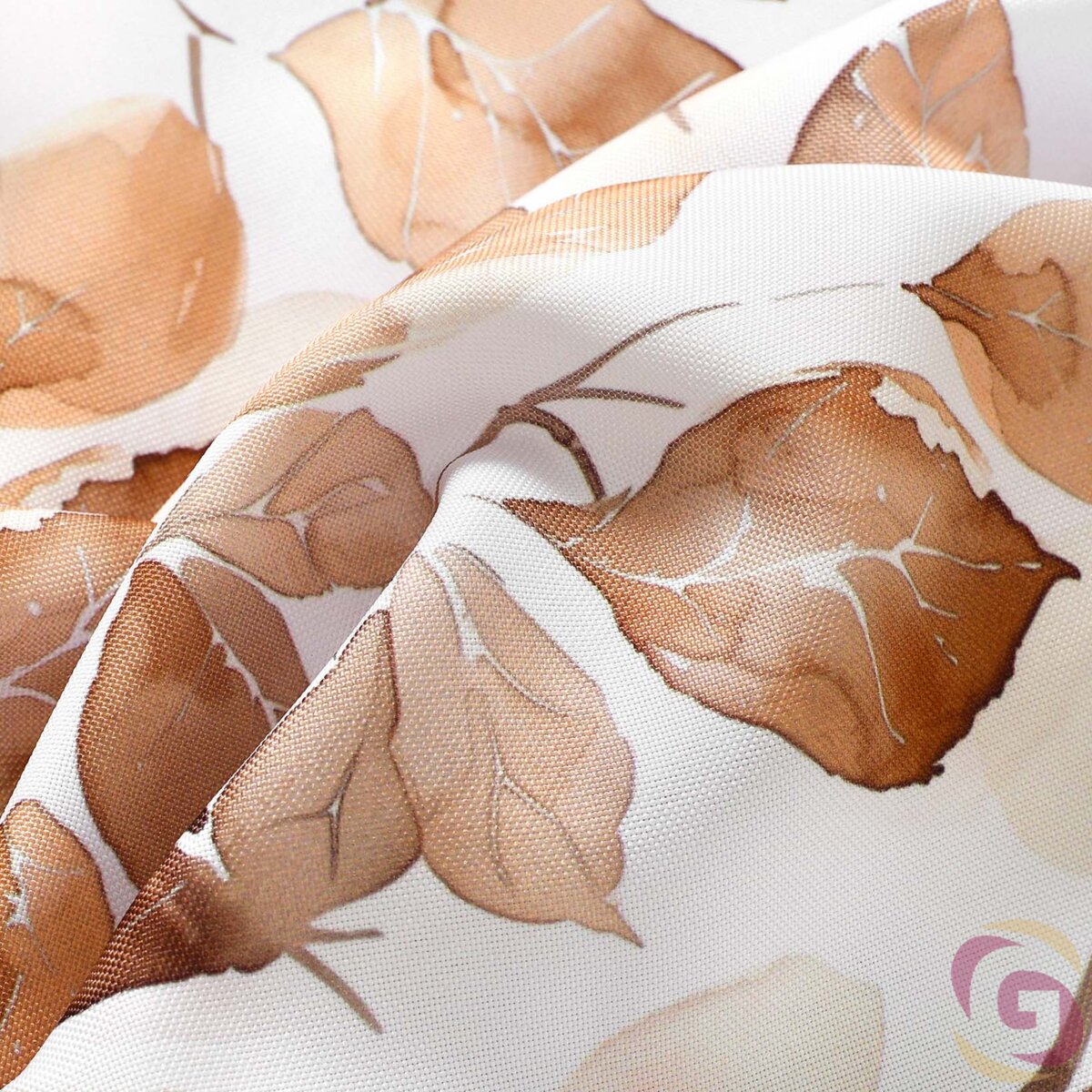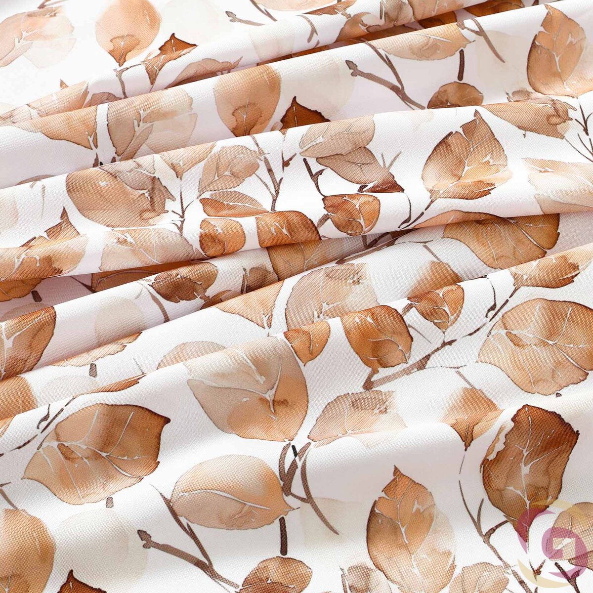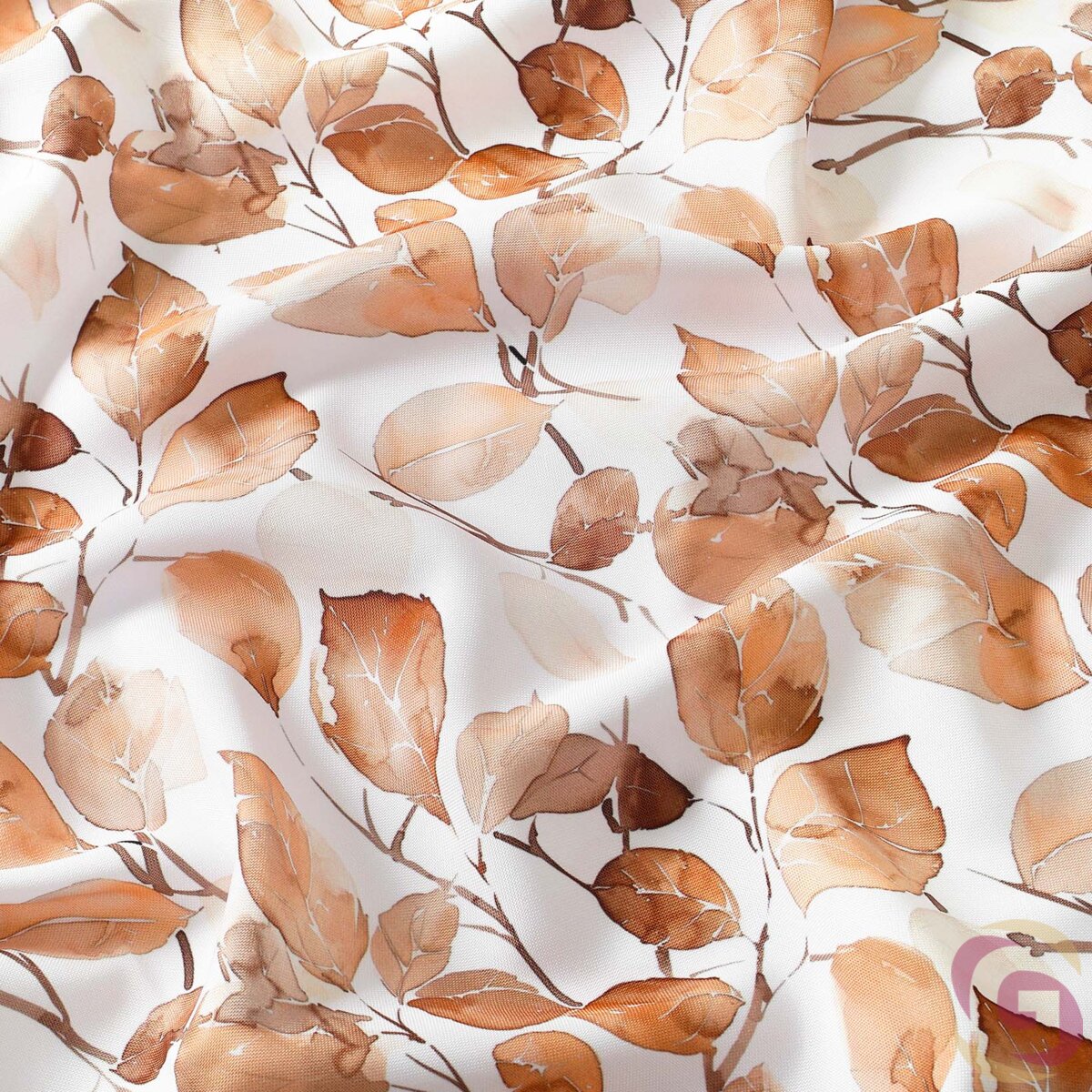 Blattabdrücke in warmen Braun- und Beigetönen kommen auf dem weißen Hintergrund schön zur Geltung und erinnern an Herbstlaub, das nach dem Regen auf dem Boden liegen geblieben ist. Ein dezentes Motiv, das sich hervorragend für ein herbstlich gestaltetes Interieur eignet.