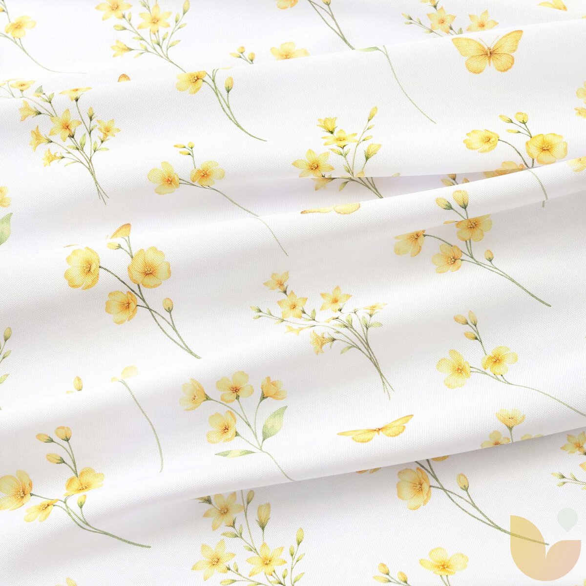 Ein Tischdecke mit Motiv einer gelben Wiese bringt die ruhige Schönheit der Natur und einen Hauch von Wohlbefinden auf Ihren Tisch. Zarte Blumen ergänzen dezent das tägliche Essen sowie die Momente mit Familie und Freunden.