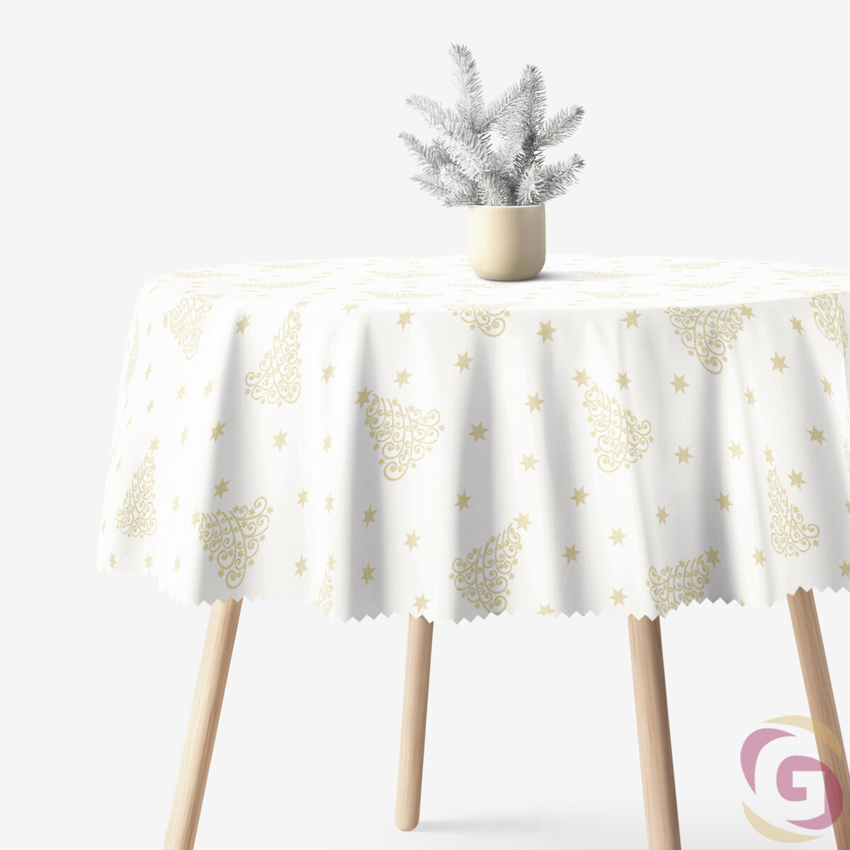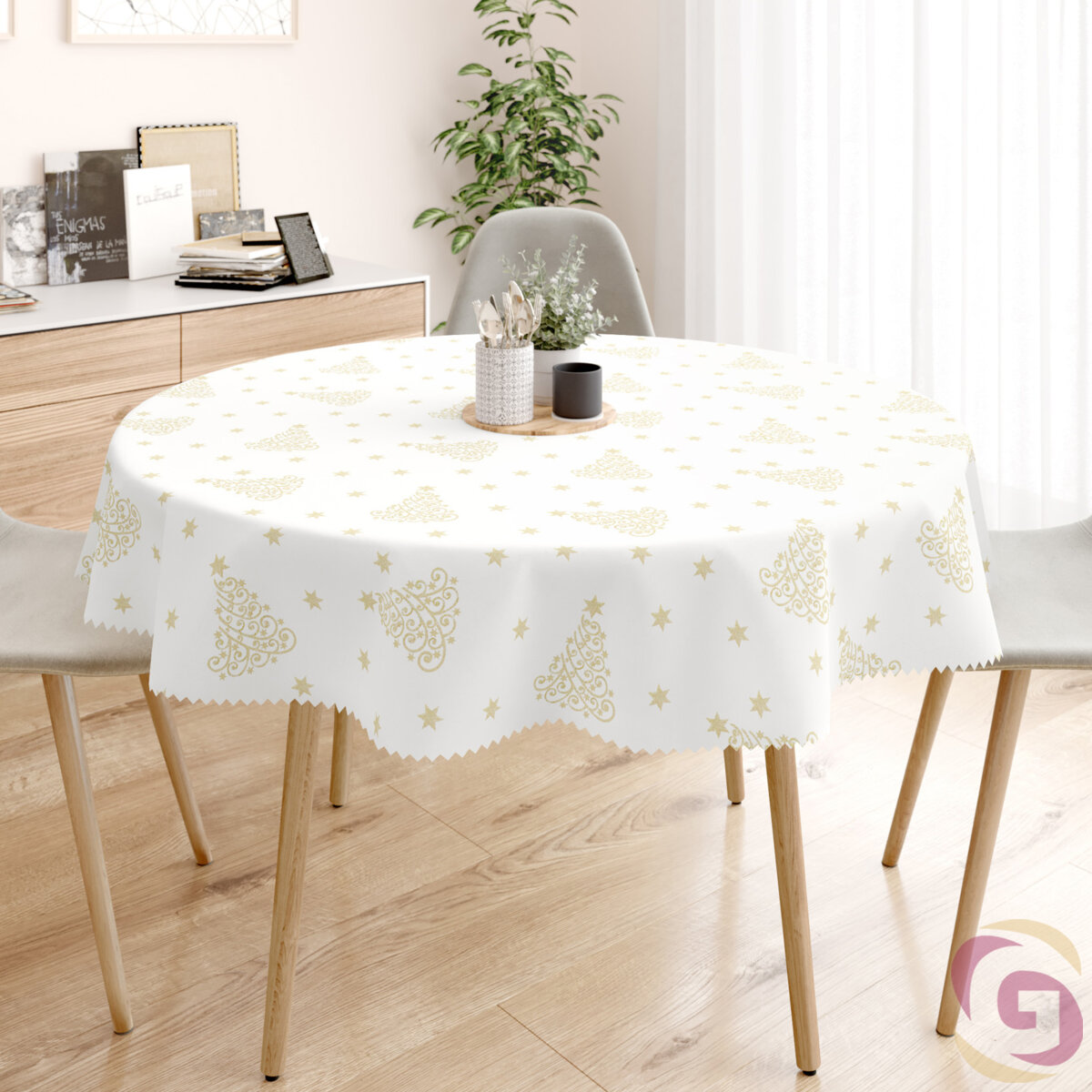 Runde Weihnachts Teflon-Tischdecke - Goldene Tannenbäume und Sterne