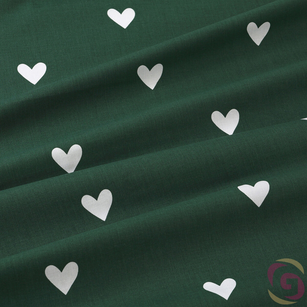 Runde Weihnachts-Tischdecke 100% Baumwolle - Herzchen auf Dunkelgrün