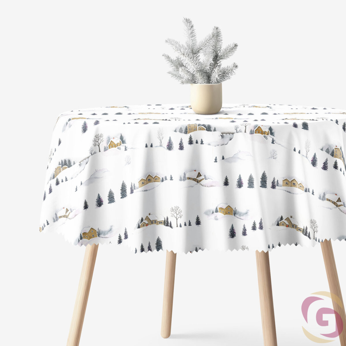 Runde Weihnachts-Tischdecke Teflon - Winterlandschaft