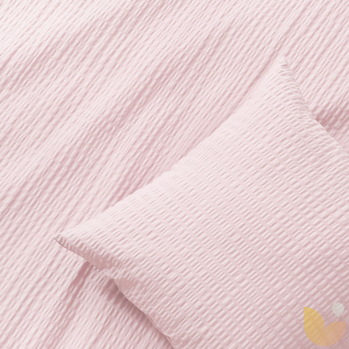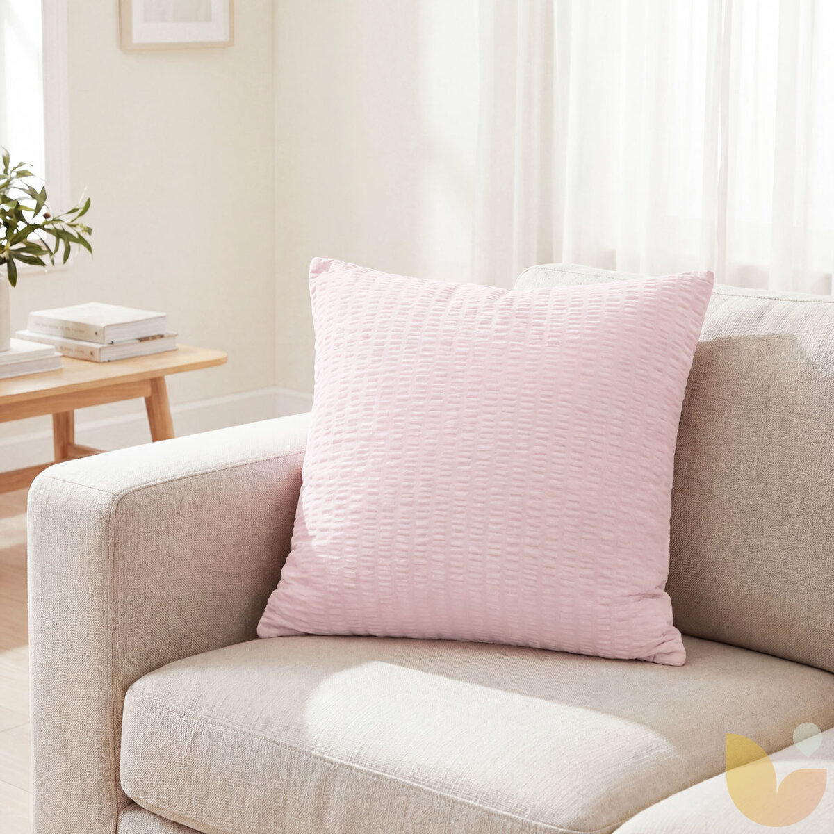 Seersucker-Kissenbezug aus Baumwollein puderrosa. Der Kissenbezug ist aus hochwertiger und angenehmer 100% Baumwolle gefertigt. Er hat einen praktischen Reißverschluss.