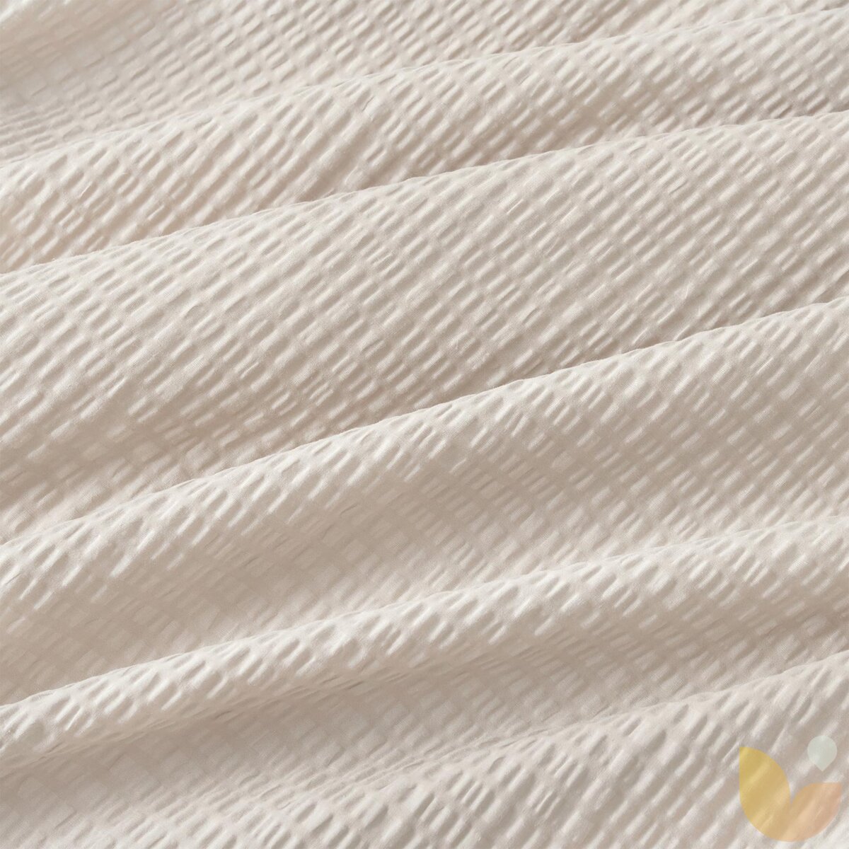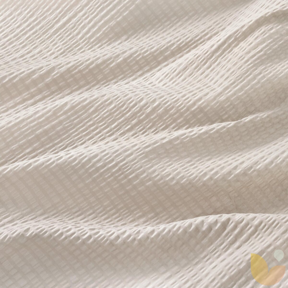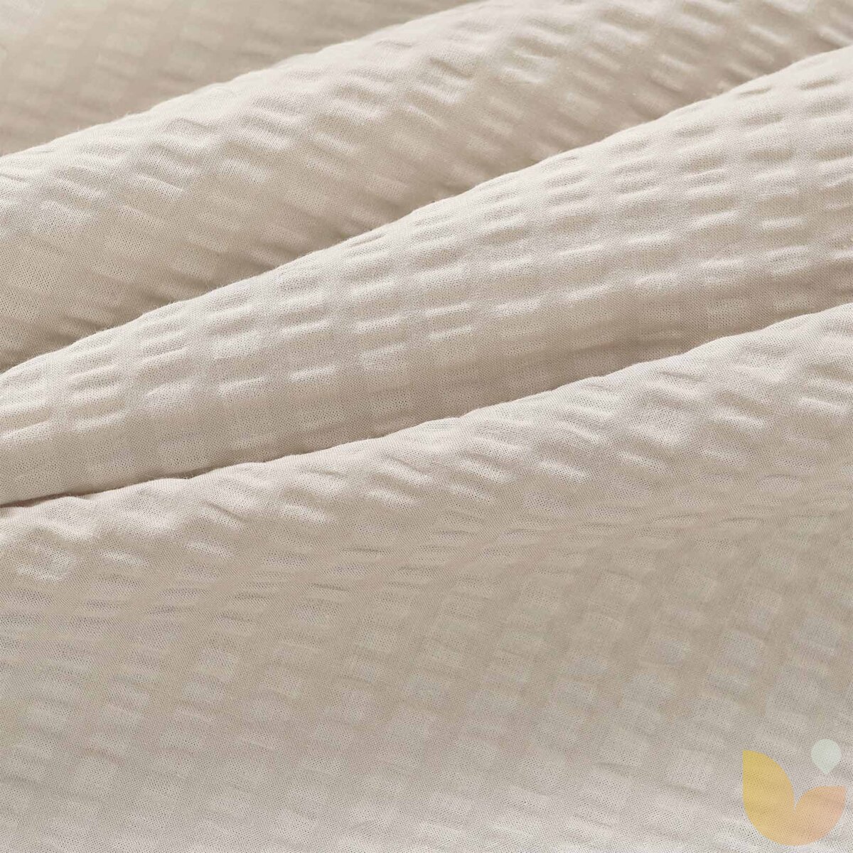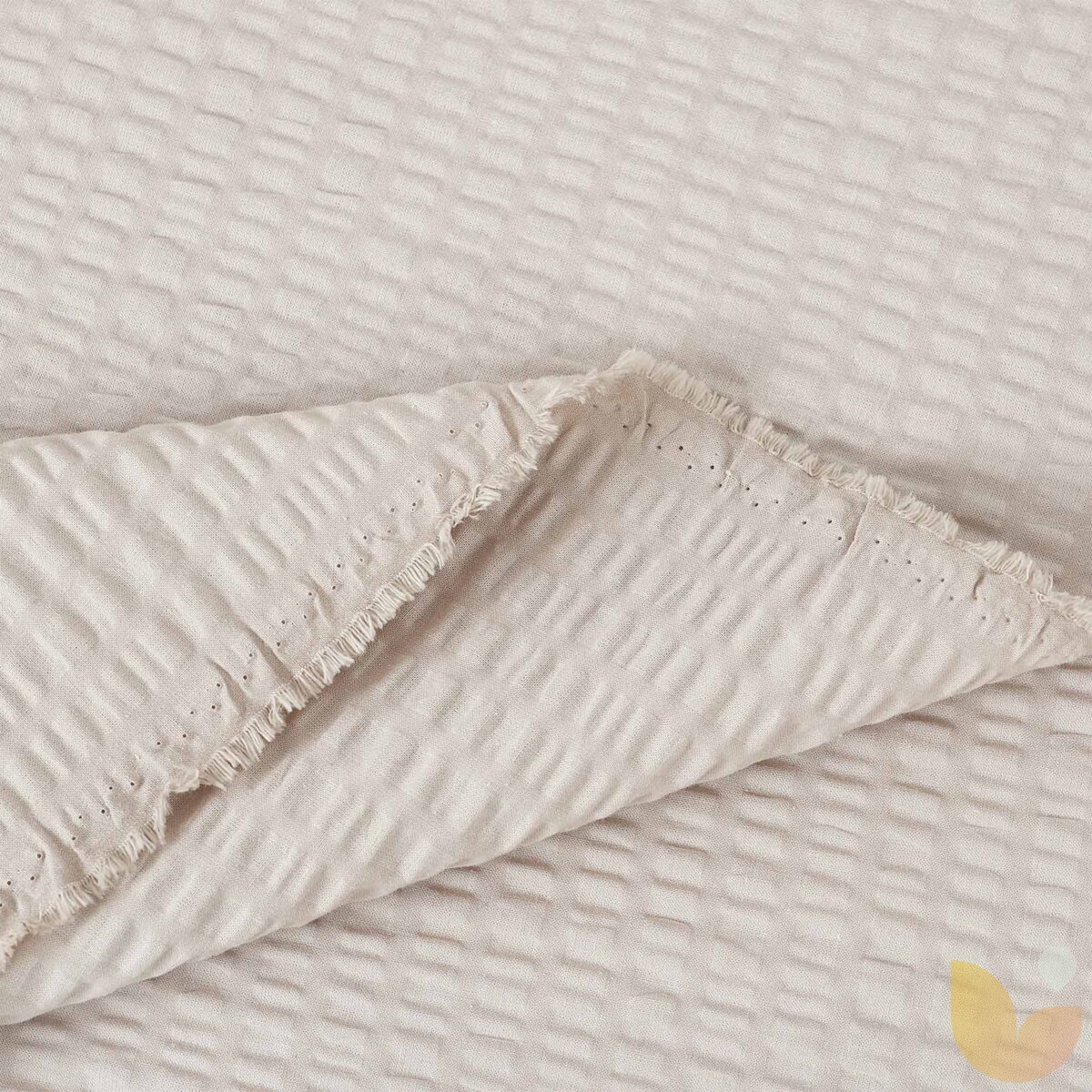 Seersucker in der Farbe latte. Die Breite des Stoffes beträgt 160 cm. Der Stoff besteht aus hochwertiger, weicher 100 % Baumwolle mit einem Gewicht von 145 g/m2 hergestellt. Es handelt sich um einen Baumwollstoff, der durch die Kreppverarbeitung eine charakteristisch gewellte Oberfläche erhält. Der Hauptvorteil dieses Seersuckerstoffs ist, dass er nichtknittert und nicht gebügelt werden muss. Wir bieten Baumwollkrepp in Meterware an, die Mindestbestellmenge beträgt 0,5 m.