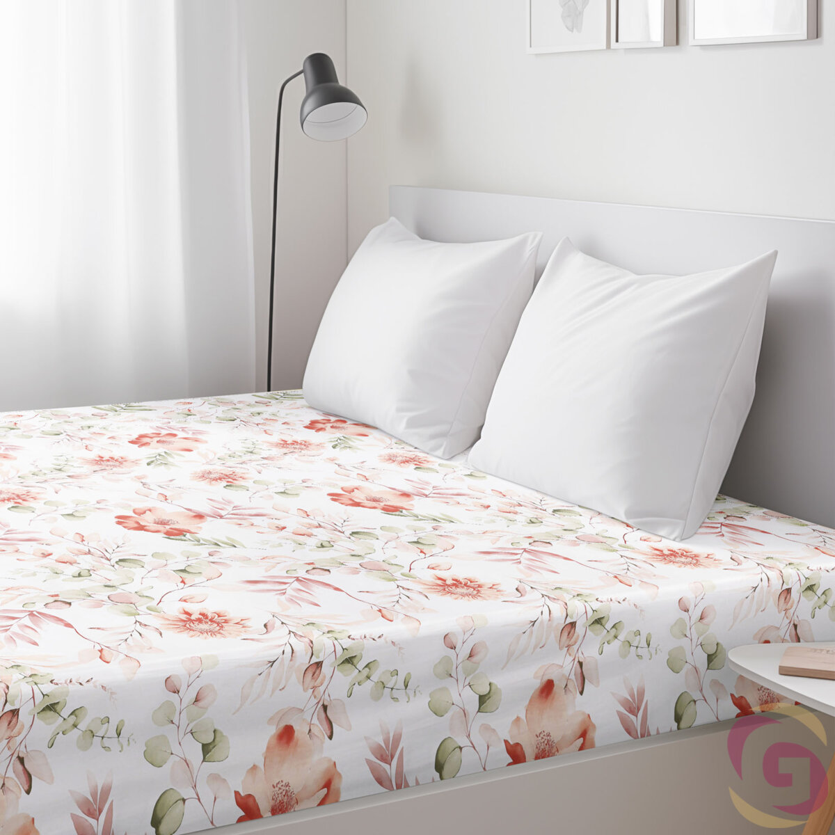 Spannbettlaken aus Baumwolle Deluxe - aquarelle Blumen