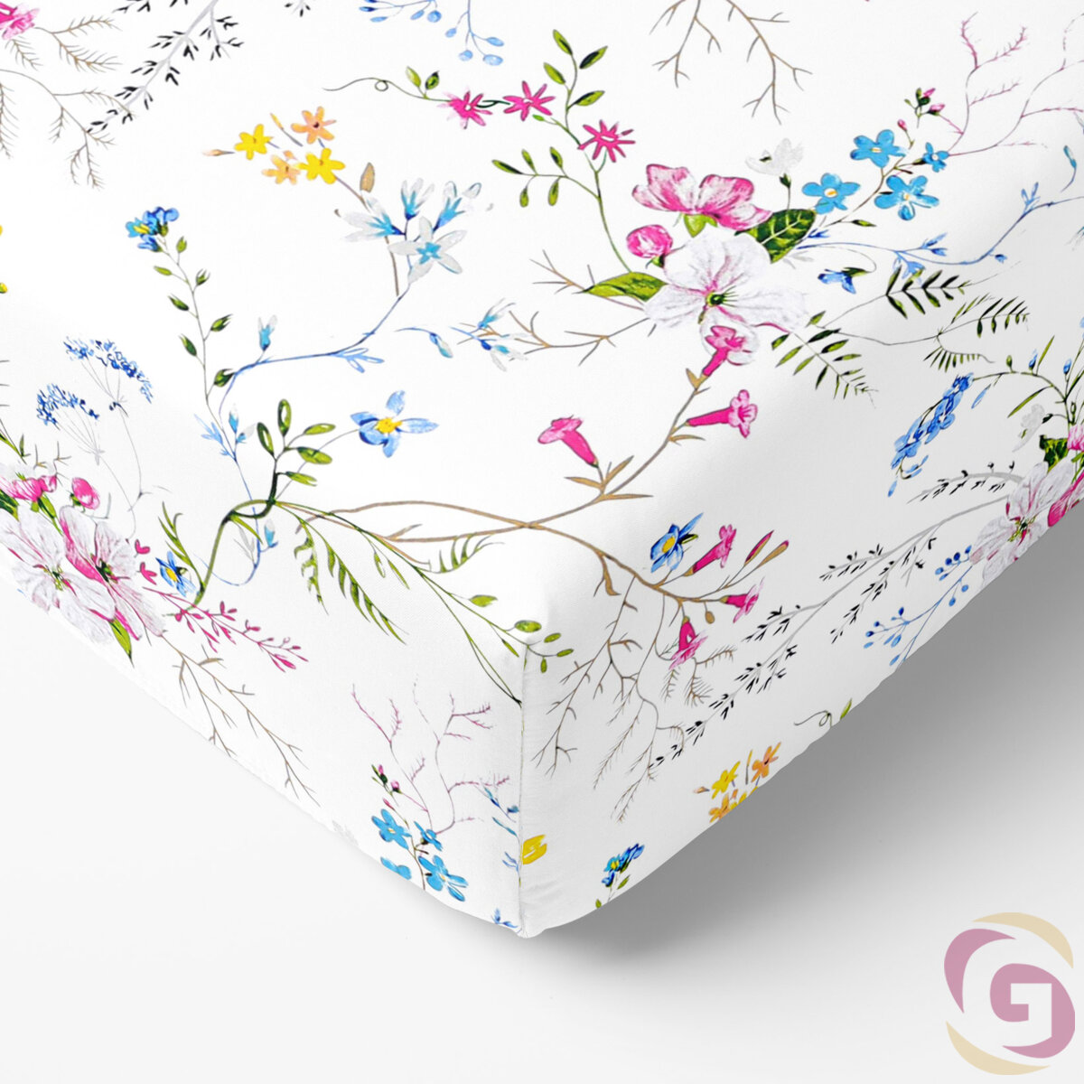 Spannbettlaken aus Baumwolle - Gemalte Wiesenblumen