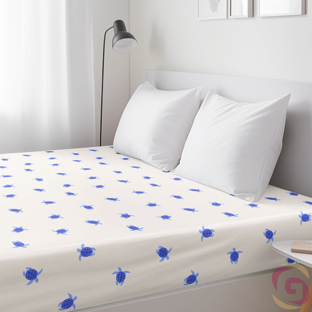 Bettlaken mit Motiv Meeresschildkröten schaffen eine ruhige und ungestörte Atmosphäre in Ihrem Schlafzimmer für die bestmögliche Erholung. Dieses Baumwolllaken (mit Gummizug) besteht aus 100% glatter Baumwolle mit einem Gewicht von 145 g/m2. Der Grundstoff des Lakens ist elfenbein.