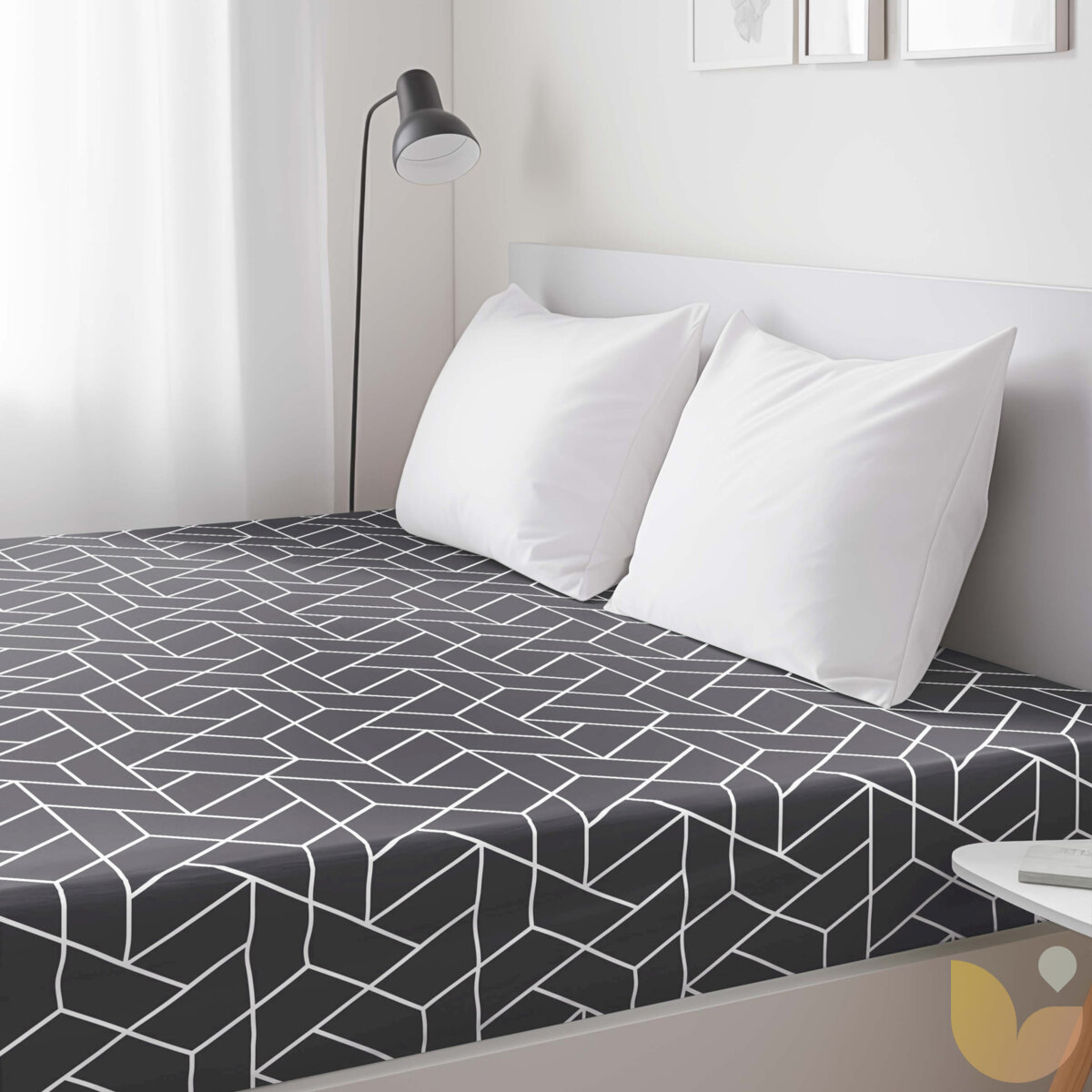 Spannbettlaken aus Baumwolle - Mosaik auf Dunkelgrau