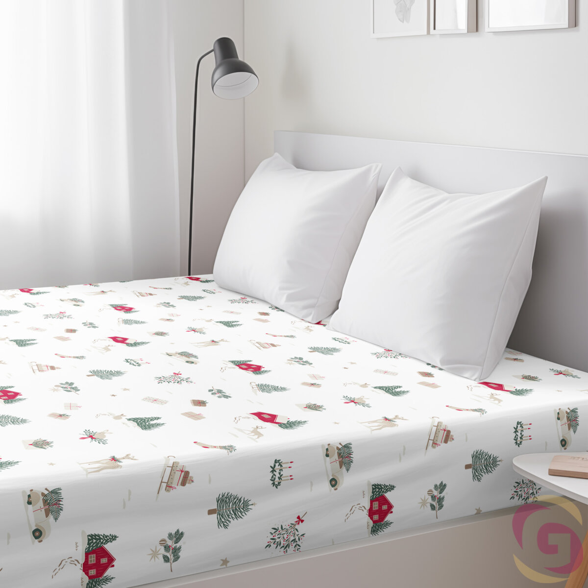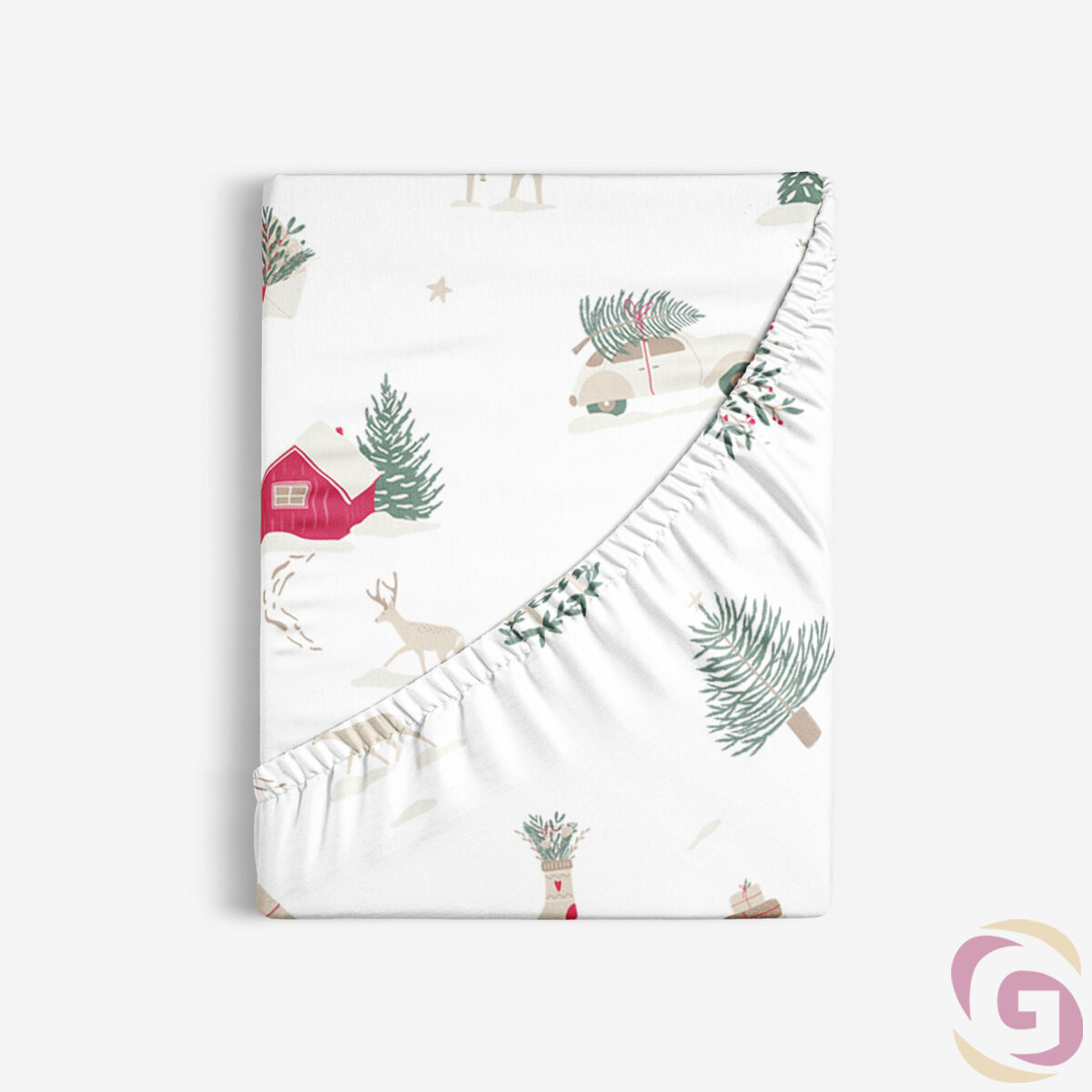 Weihnachtliches Spannbettlaken aus Baumwolle - Traditionelle Weihnachten