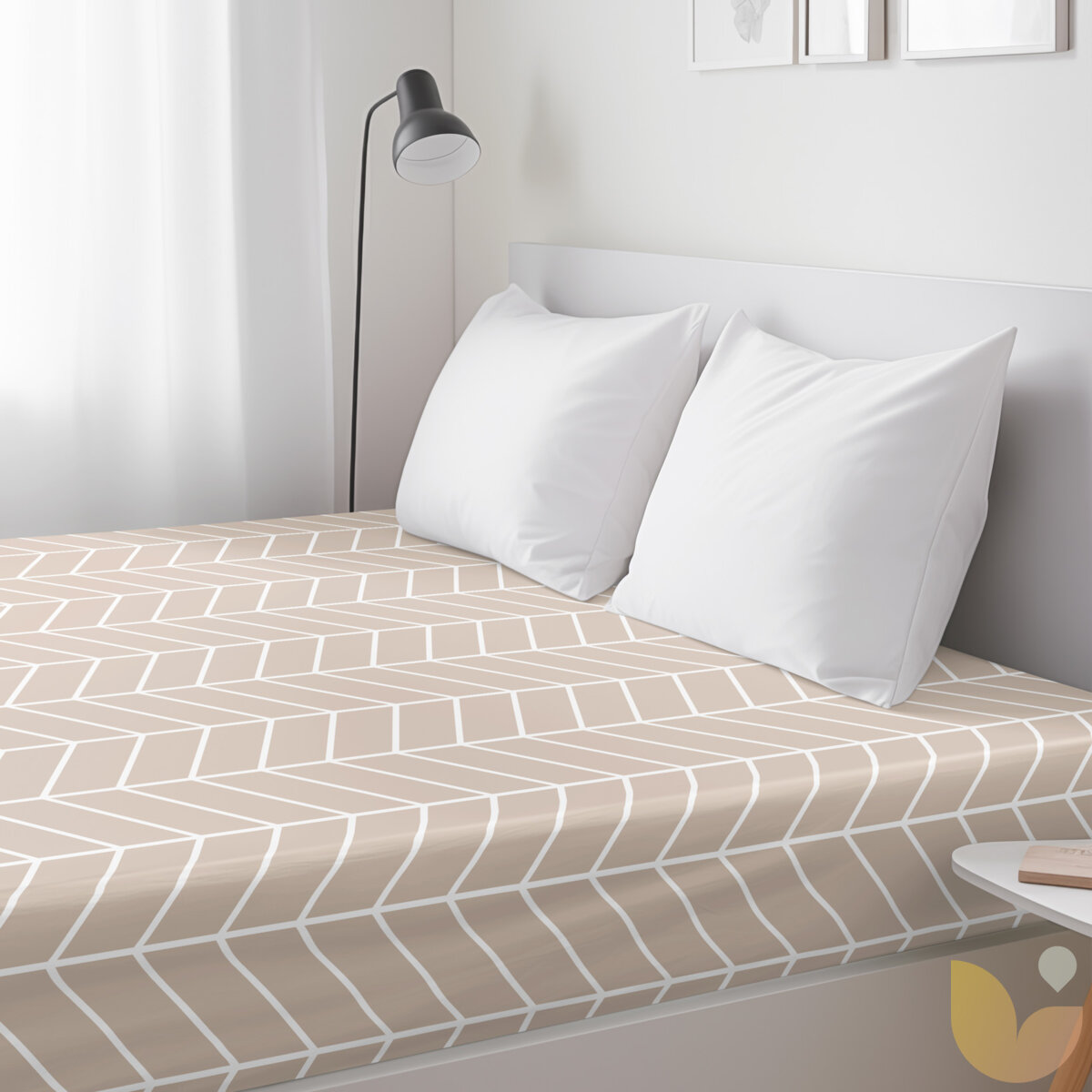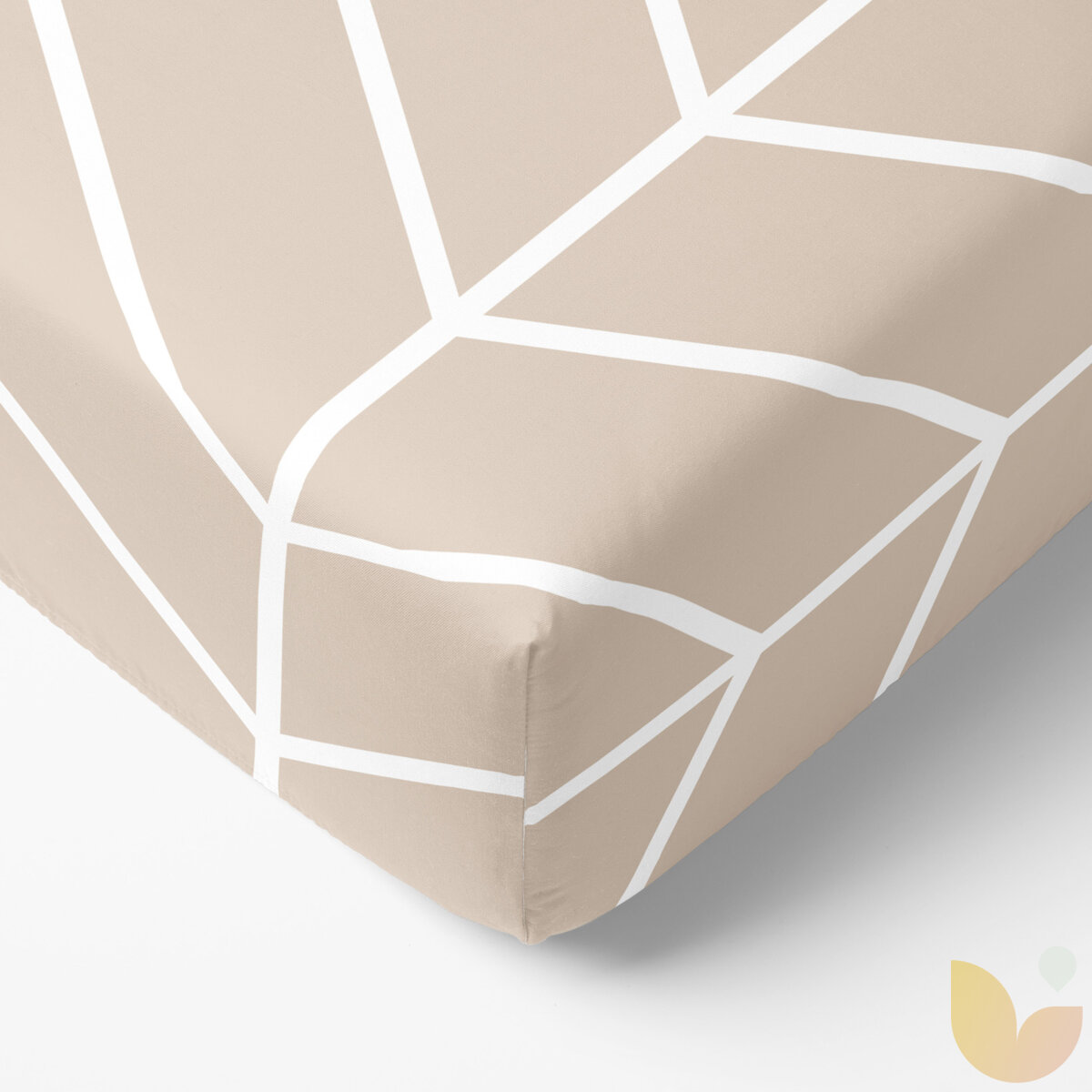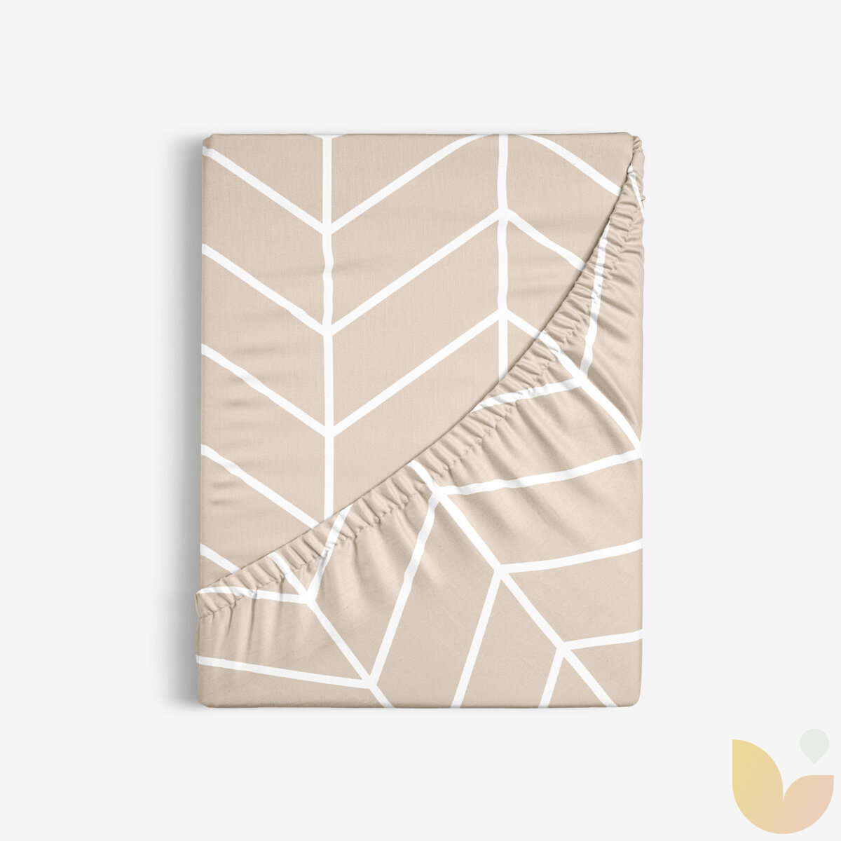 Spannbettlaken aus Baumwolle - Weißer Zickzack auf Beige
