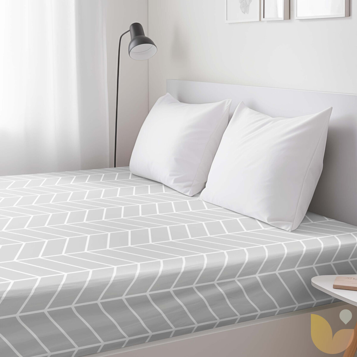Spannbettlaken aus Baumwolle - Zickzack auf Grau