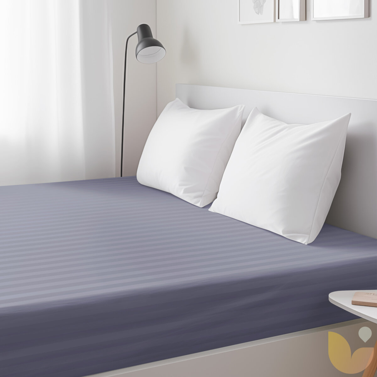 Spannbettlaken aus Damask - dunkelgraue Streifen mit Satin-Glanz