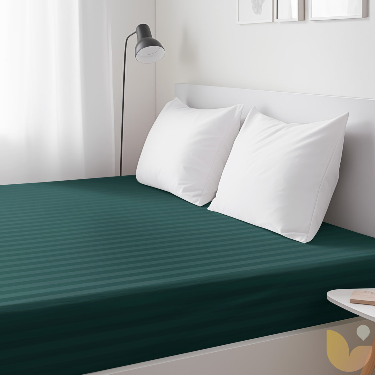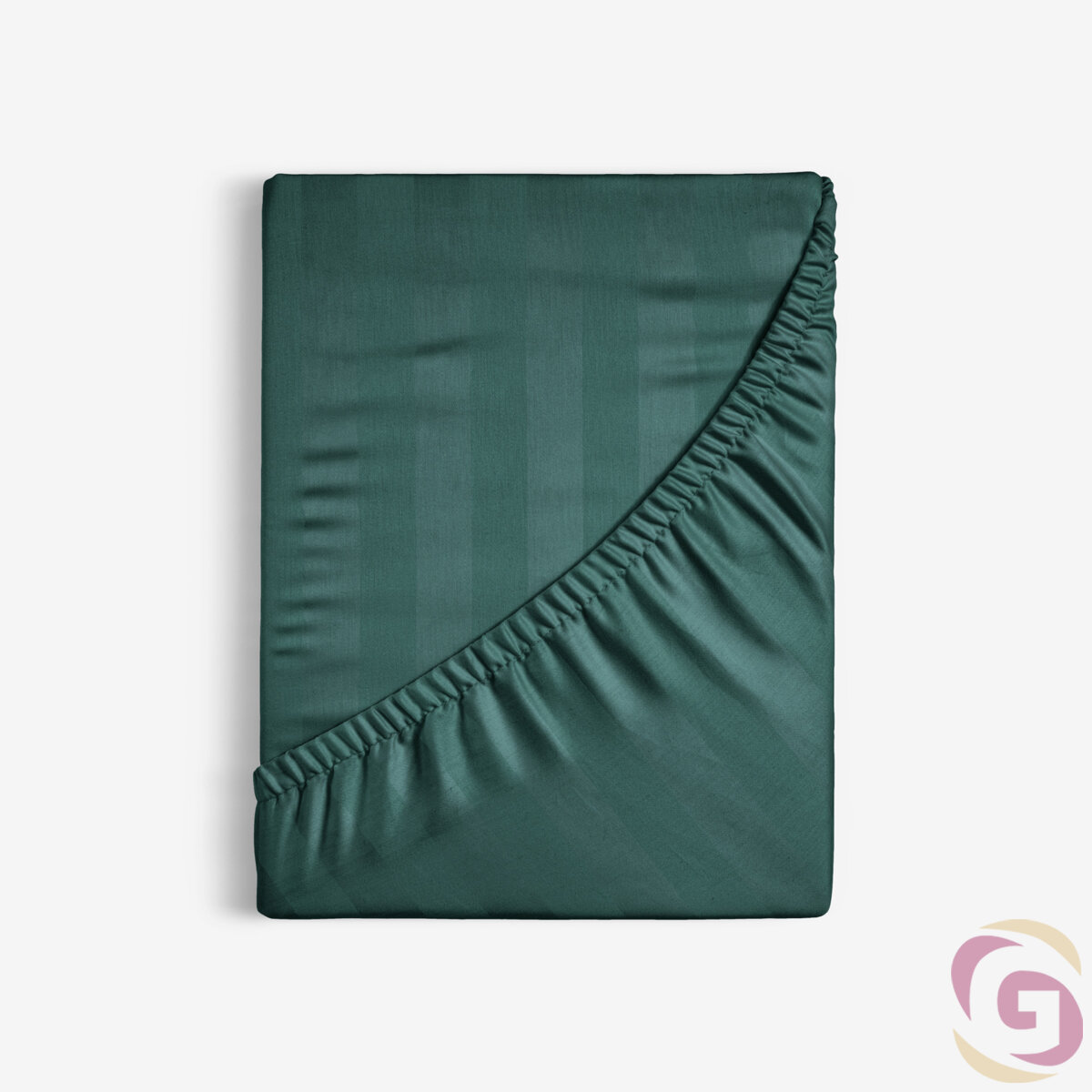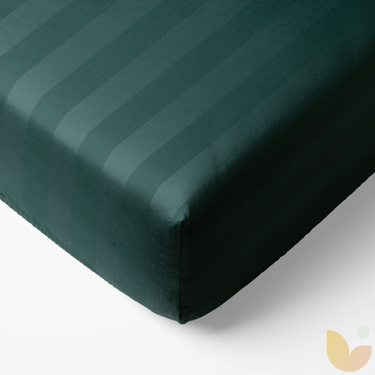 Spannbettlaken aus Damask - dunkelgrüne Streifen mit Satin-Glanz