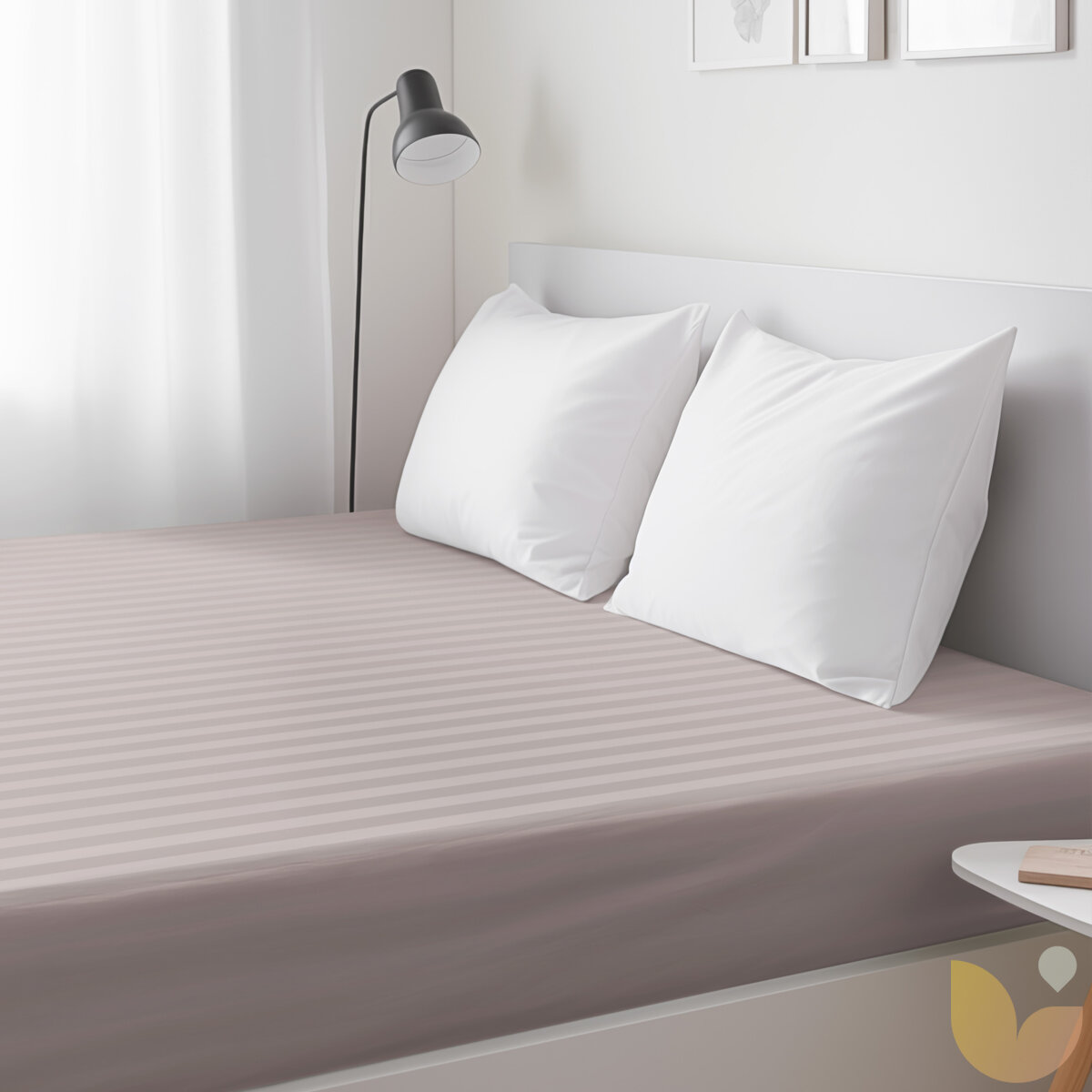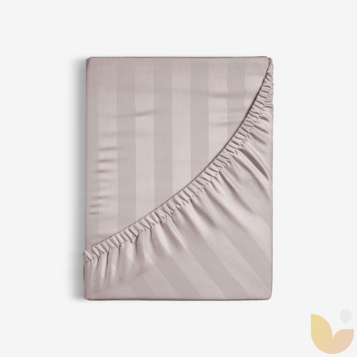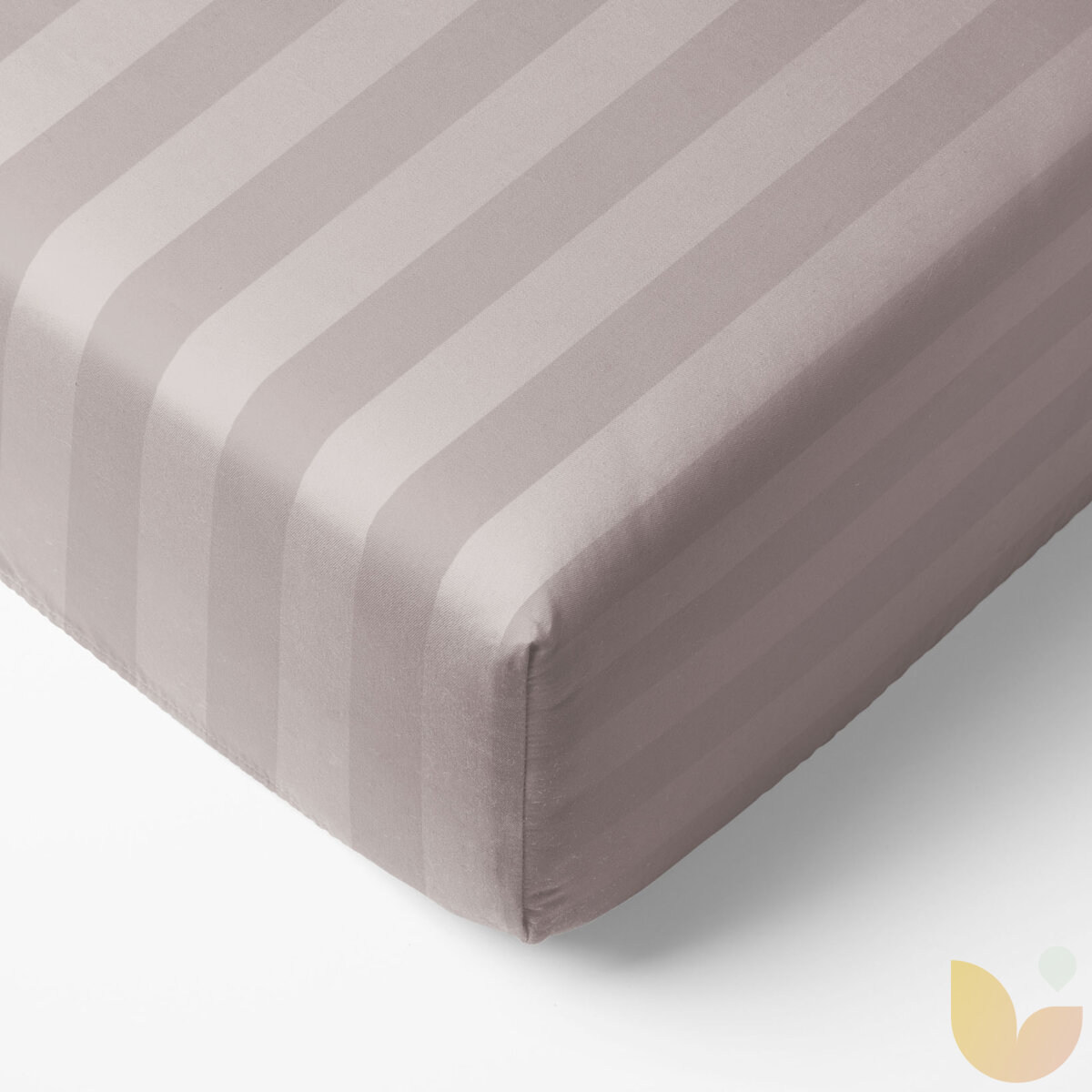 Spannbettlaken aus Damask - graubraun Streifen mit Satin-Glanz