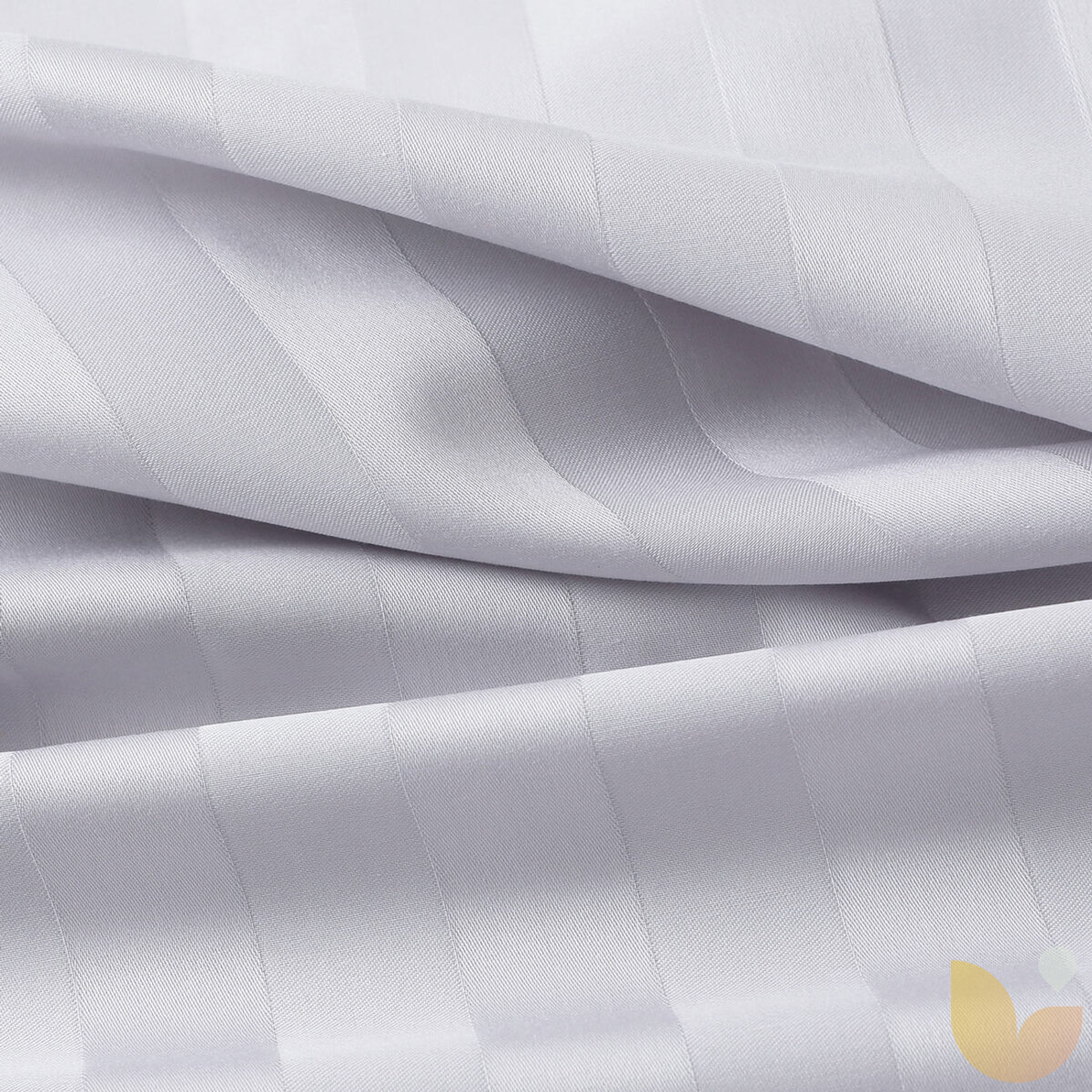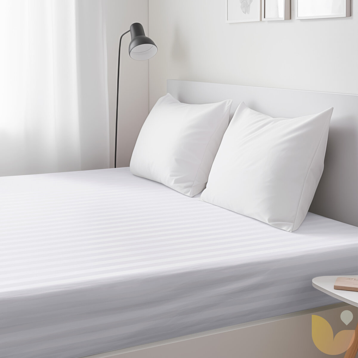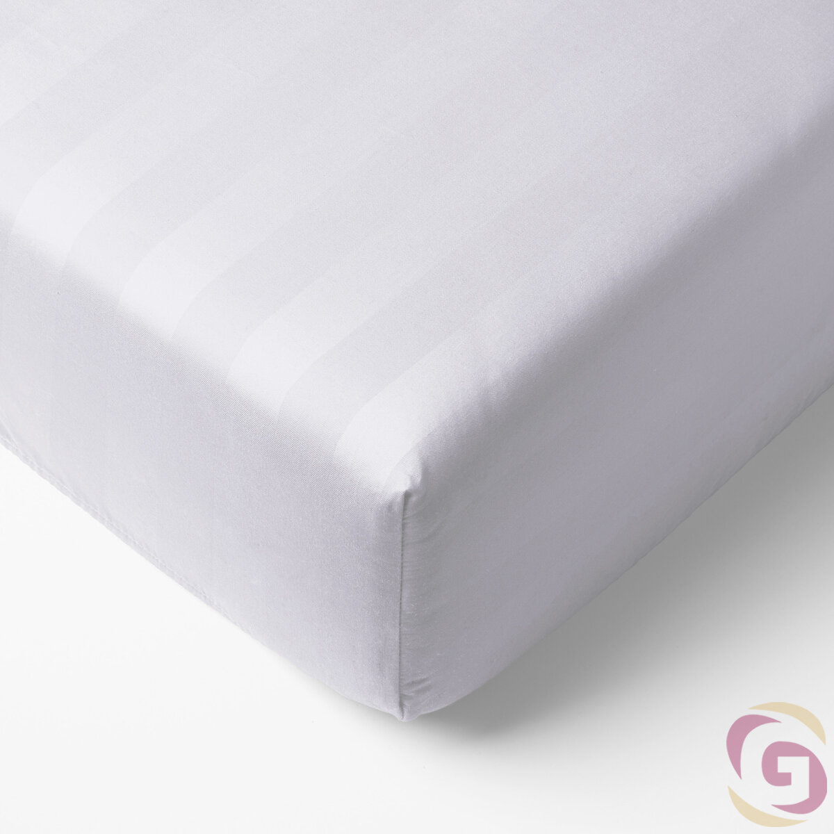 Spannbettlaken aus Damask - Weiße Streifen mit Satin-Glanz