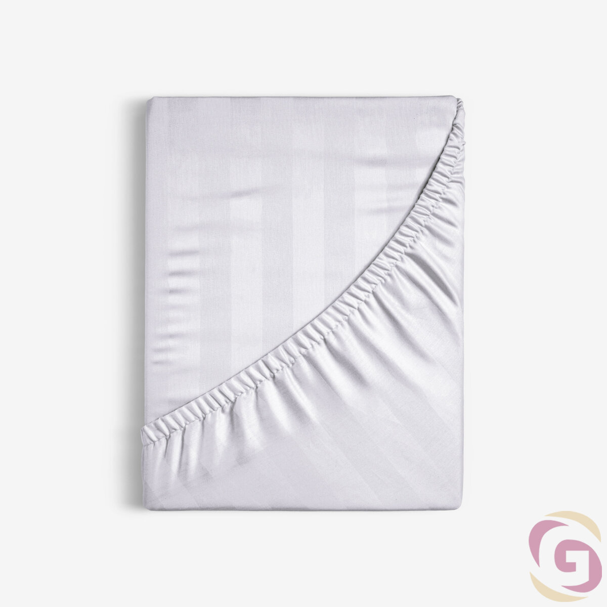 Spannbettlaken aus Damask - hellgraue Streifen mit Satin-Glanz