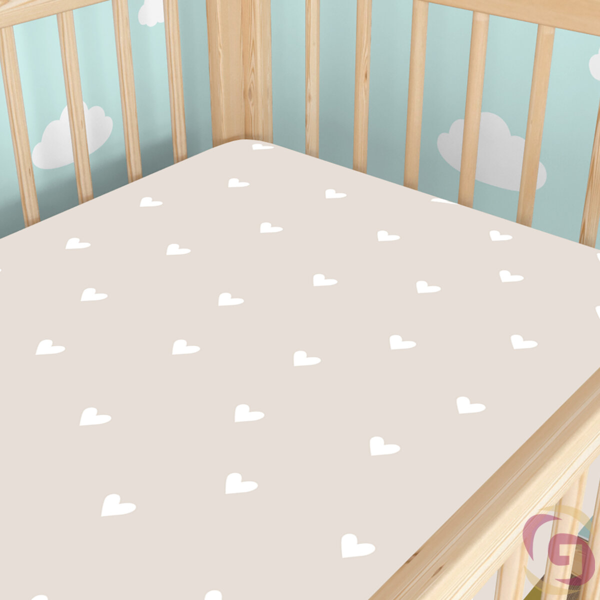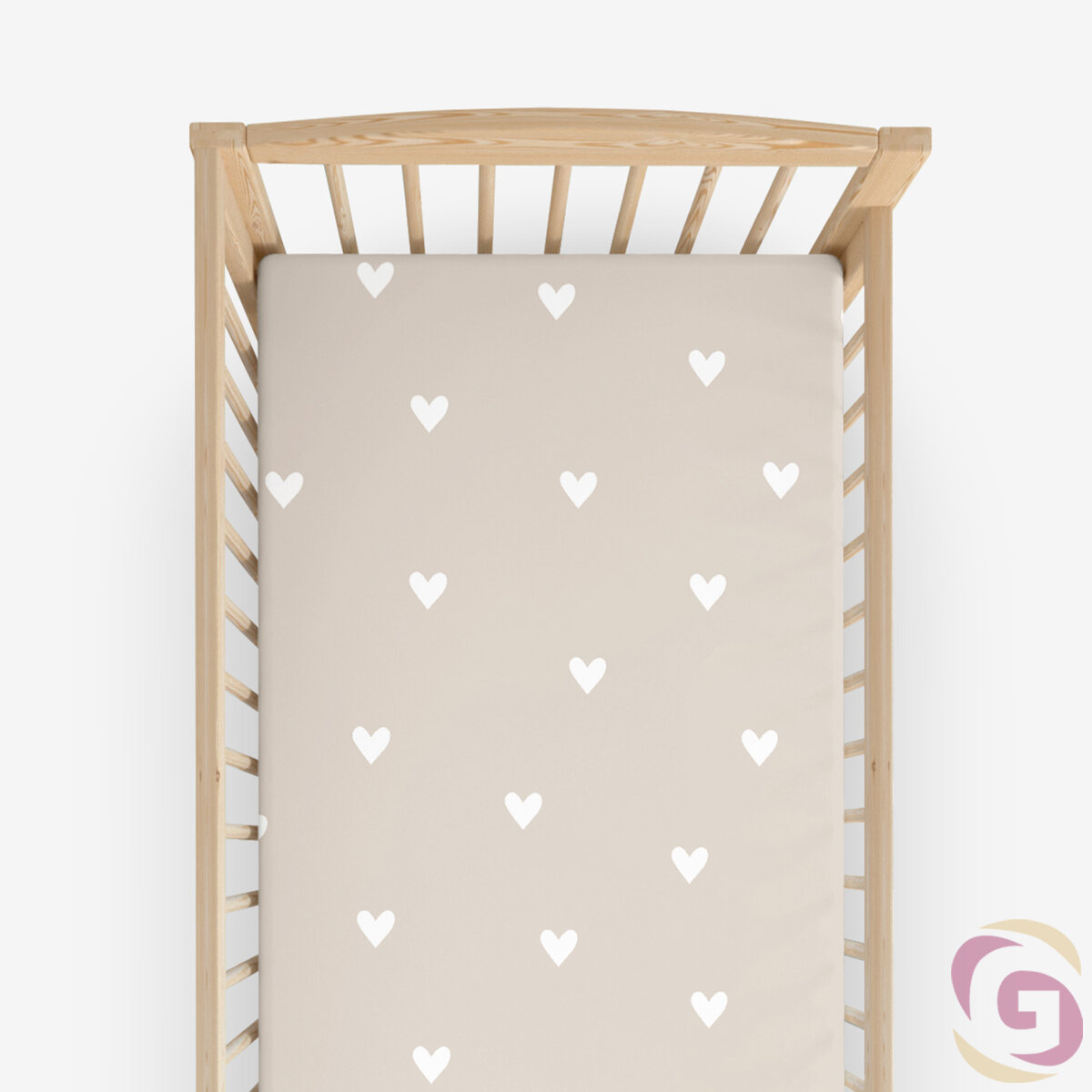 Spannbetttuch aus Baumwolle für Babybetten - Herzchen auf Latte