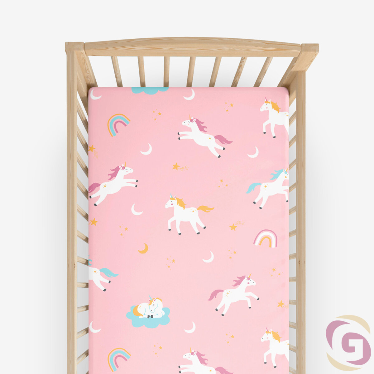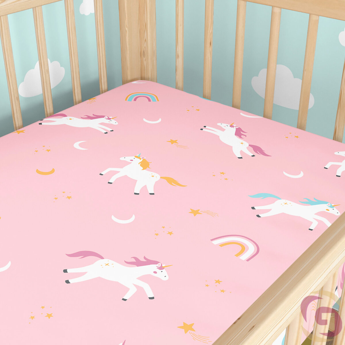 Spannbetttuch aus Baumwolle für Babybetten - Lustige Einhörner