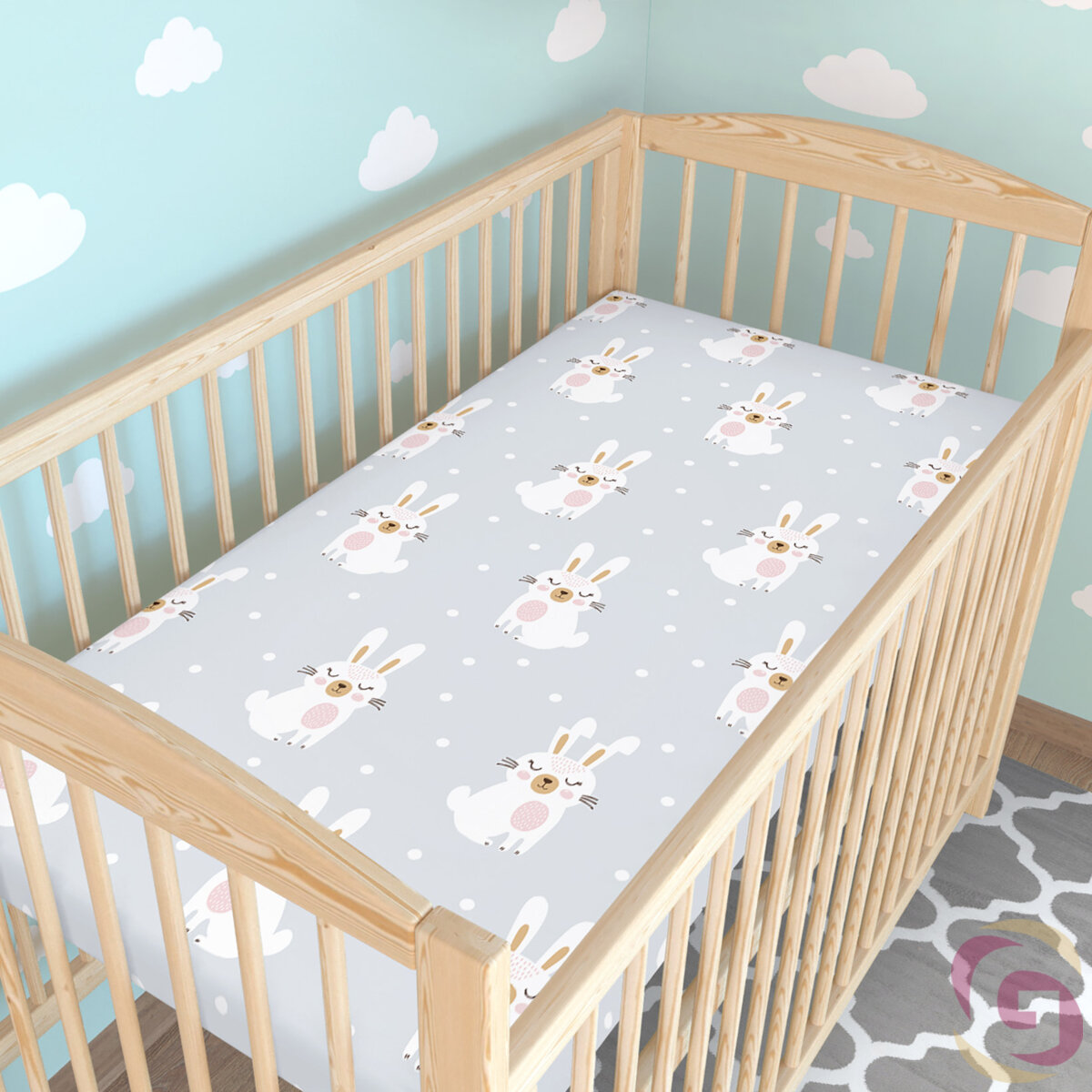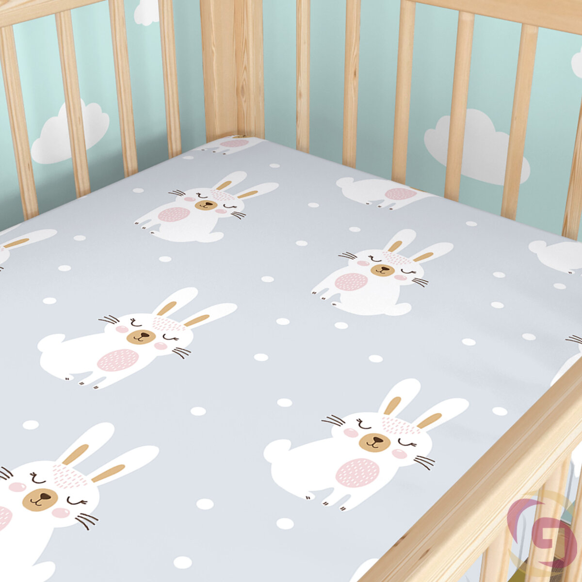Spannbetttuch aus Baumwolle für Babybetten - verträumte Kaninchen