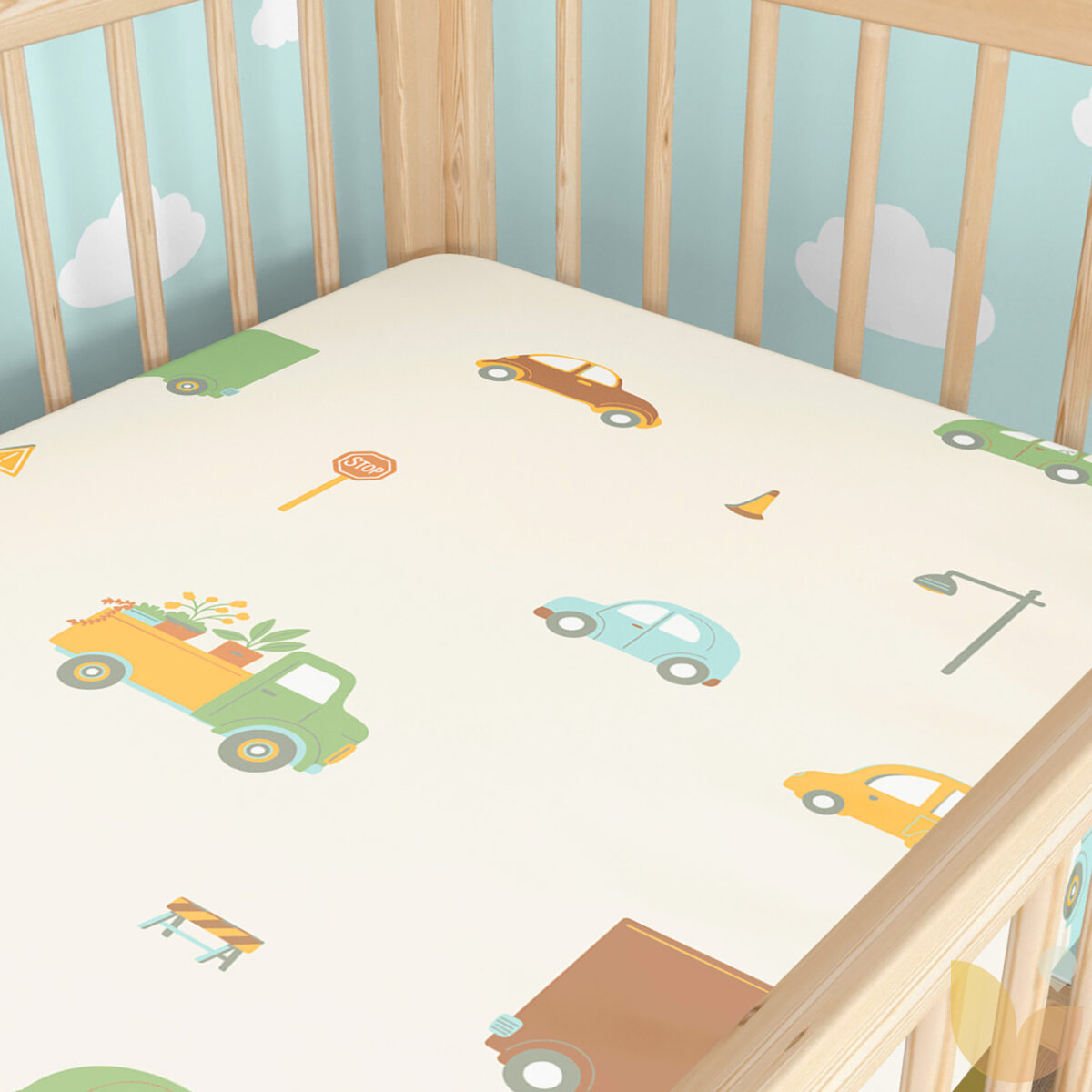 Spannbetttuch aus Baumwolle für Babybetten - Welt der Autos