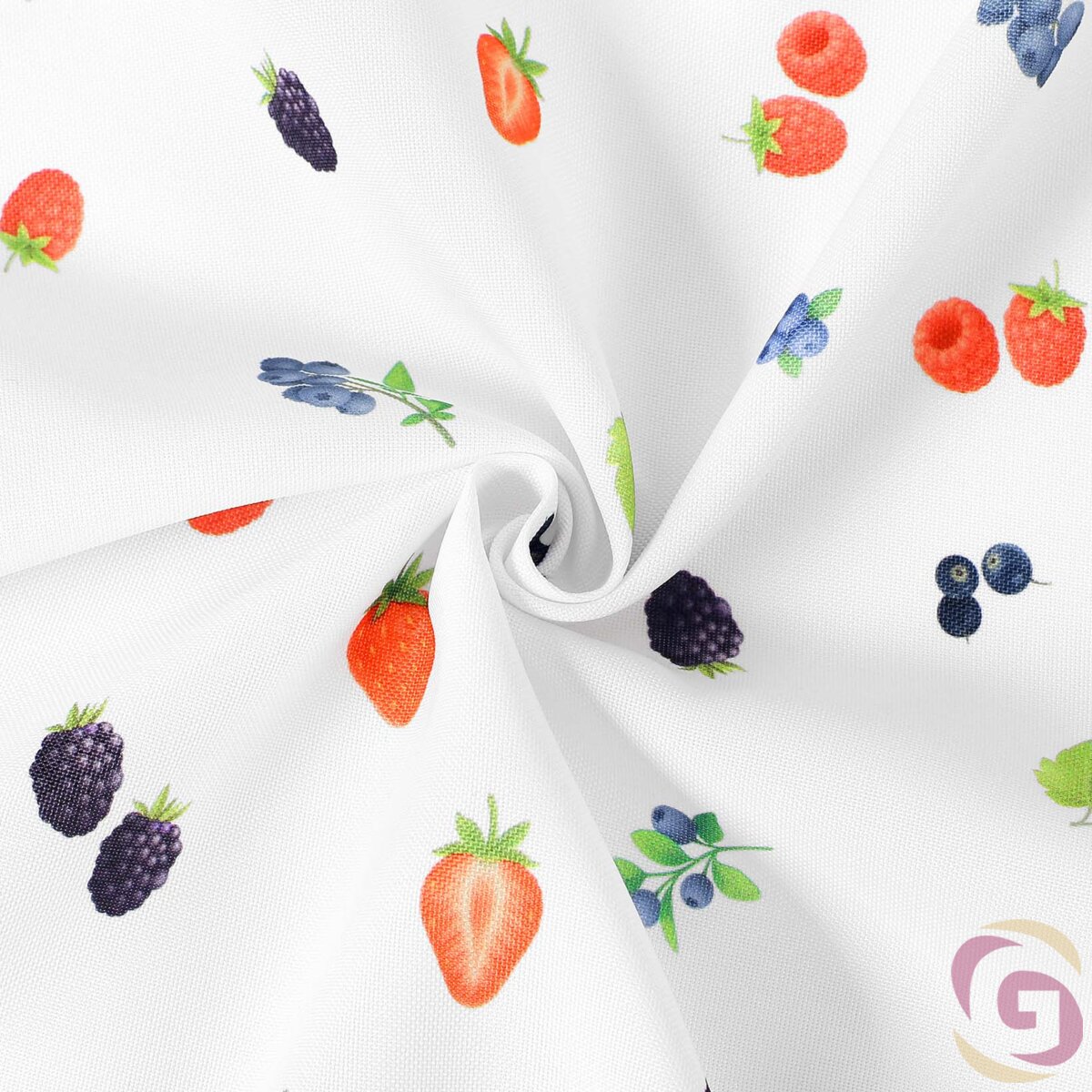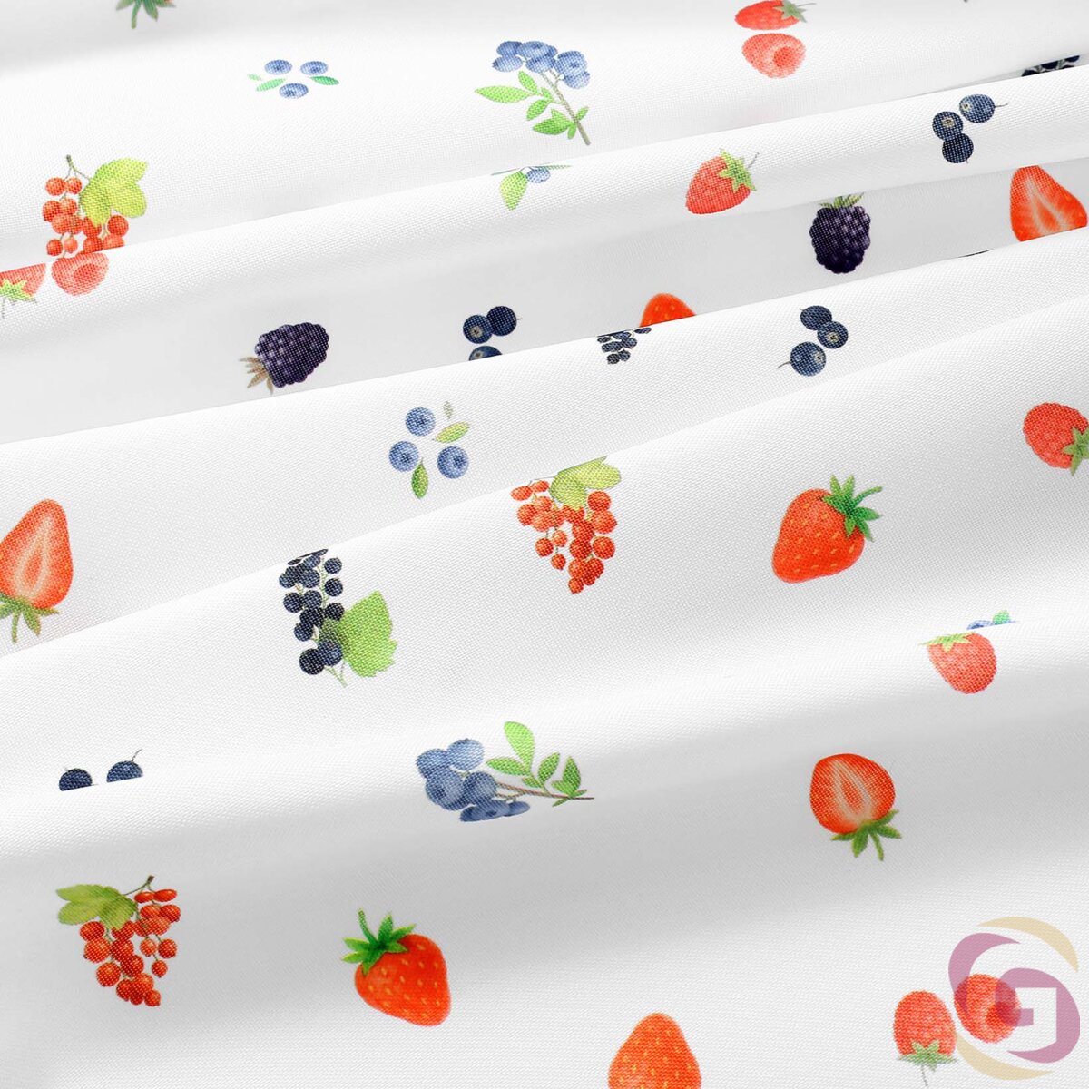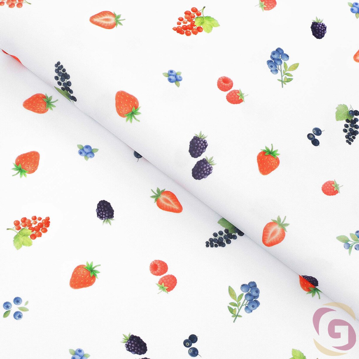 Einseitiger Dekostoff mit Teflon-Beschichtung mit Beeren. Die Breite des Stoffes beträgt 160 cm. Er besteht aus 100% Polyester mit einem Gewicht von 220 g/m2. Der Teflonstoff wird als Meterware angeboten, die Mindestabnahme beträgt 0,5 m. Wir bieten auch andere Produkte aus diesem Stoff an.