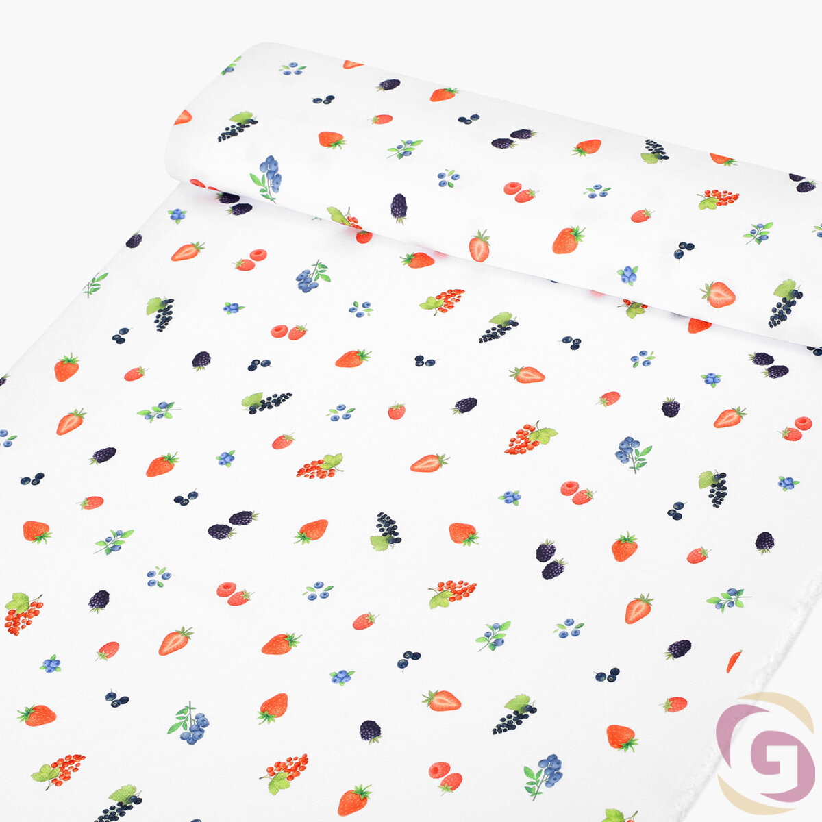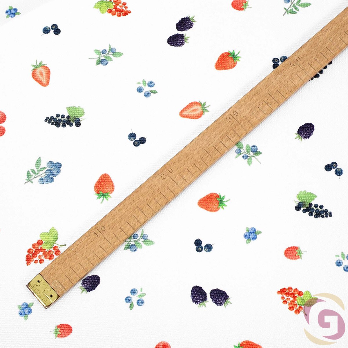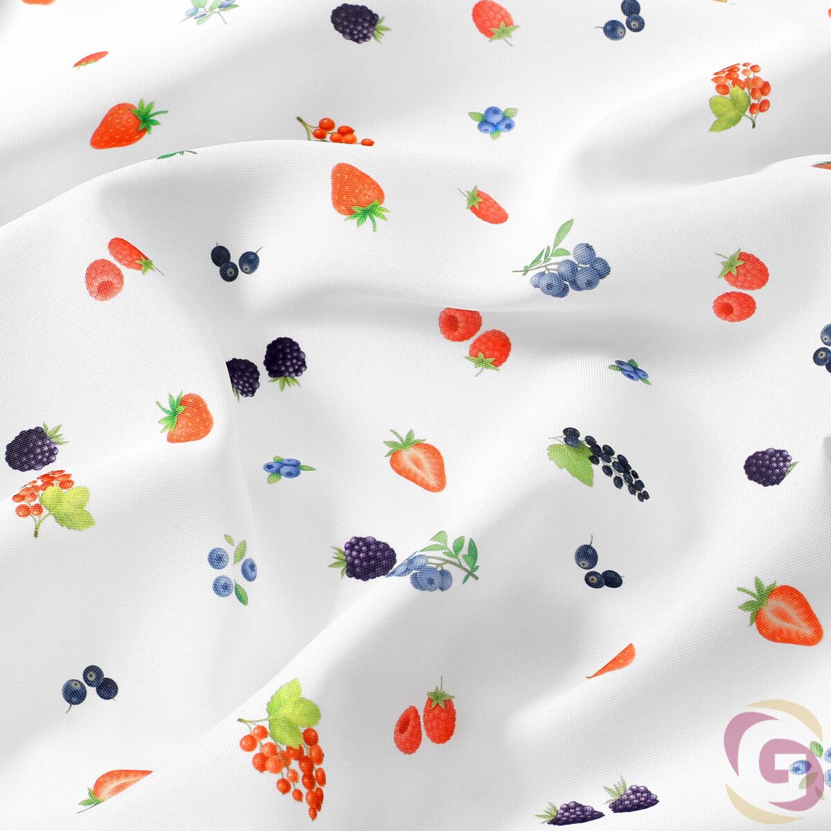 Einseitiger Dekostoff mit Teflon-Beschichtung mit Beeren. Die Breite des Stoffes beträgt 160 cm. Er besteht aus 100% Polyester mit einem Gewicht von 220 g/m2. Der Teflonstoff wird als Meterware angeboten, die Mindestabnahme beträgt 0,5 m. Wir bieten auch andere Produkte aus diesem Stoff an.