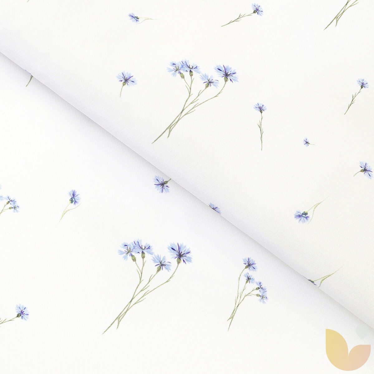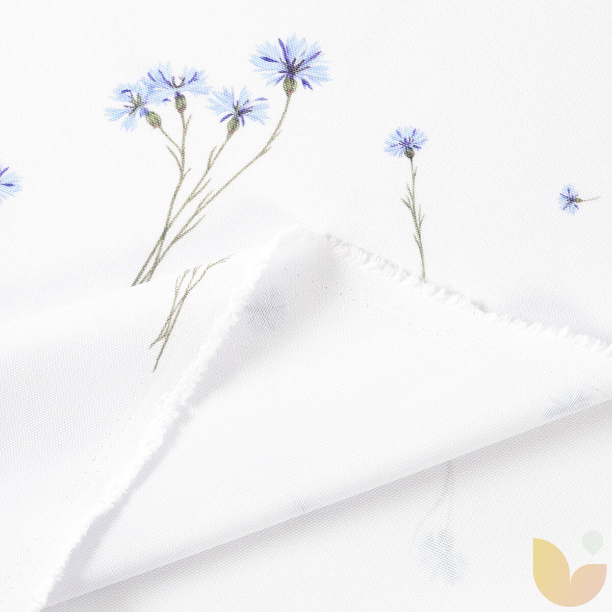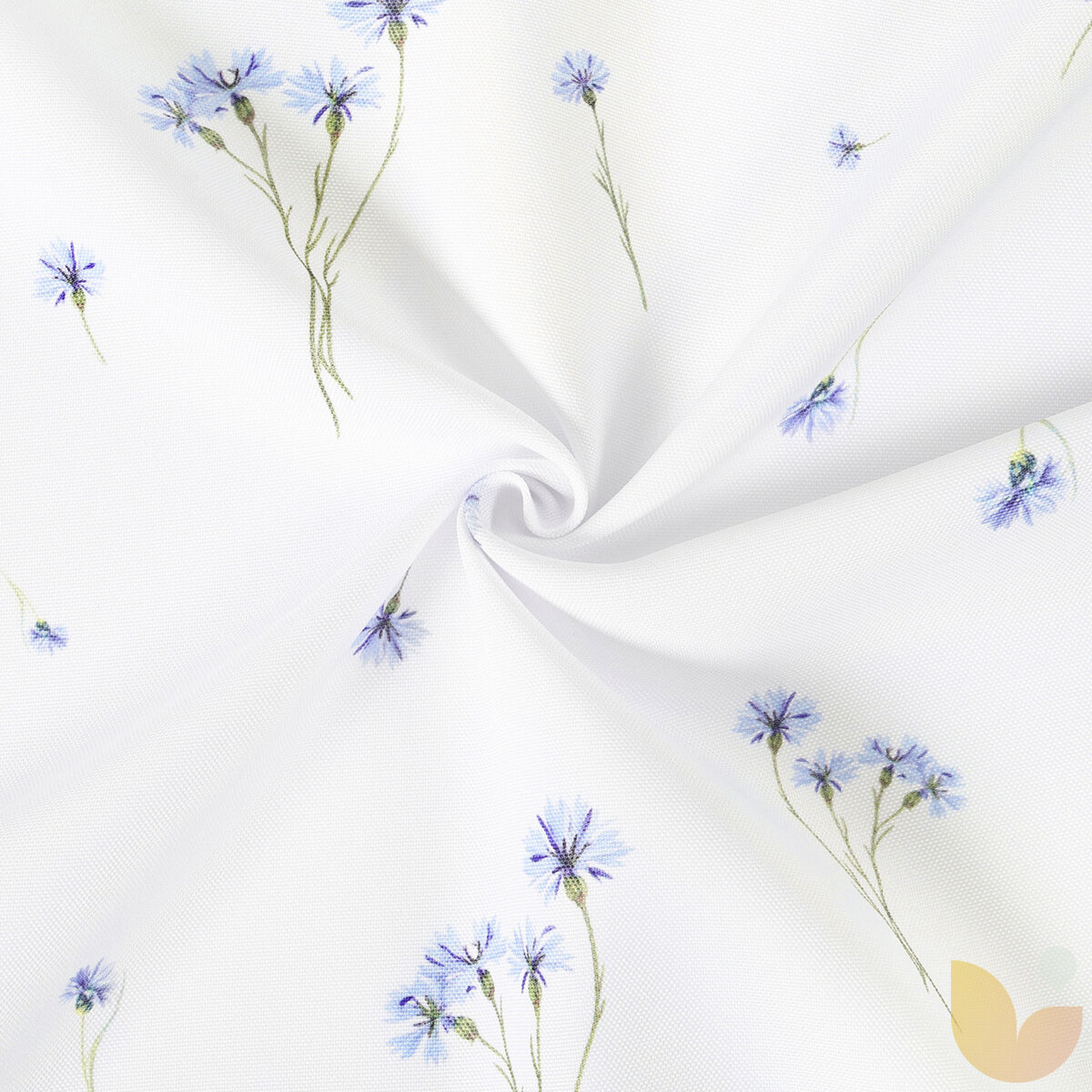 Einseitiger Dekostoff mit Teflon-Beschichtung mit Blaue Kornblumen. Die Breite des Stoffes beträgt 160 cm. Er besteht aus 100% Polyester mit einem Gewicht von 220 g/m2. Der Teflonstoff wird als Meterware angeboten, die Mindestabnahme beträgt 0,5 m. Wir bieten auch andere Produkte aus diesem Stoff an.