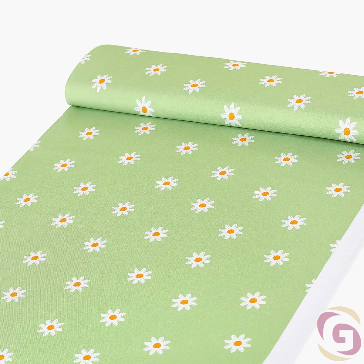 Teflonstoff für Tischdecken - Margeriten auf Grün
