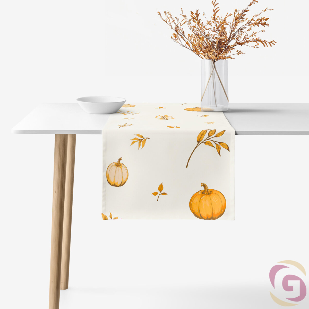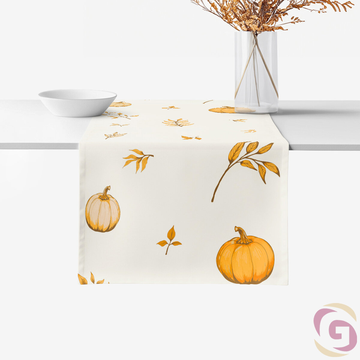 Tischläufer aus 100% Baumwolle - Herbstkürbisse und Blätter