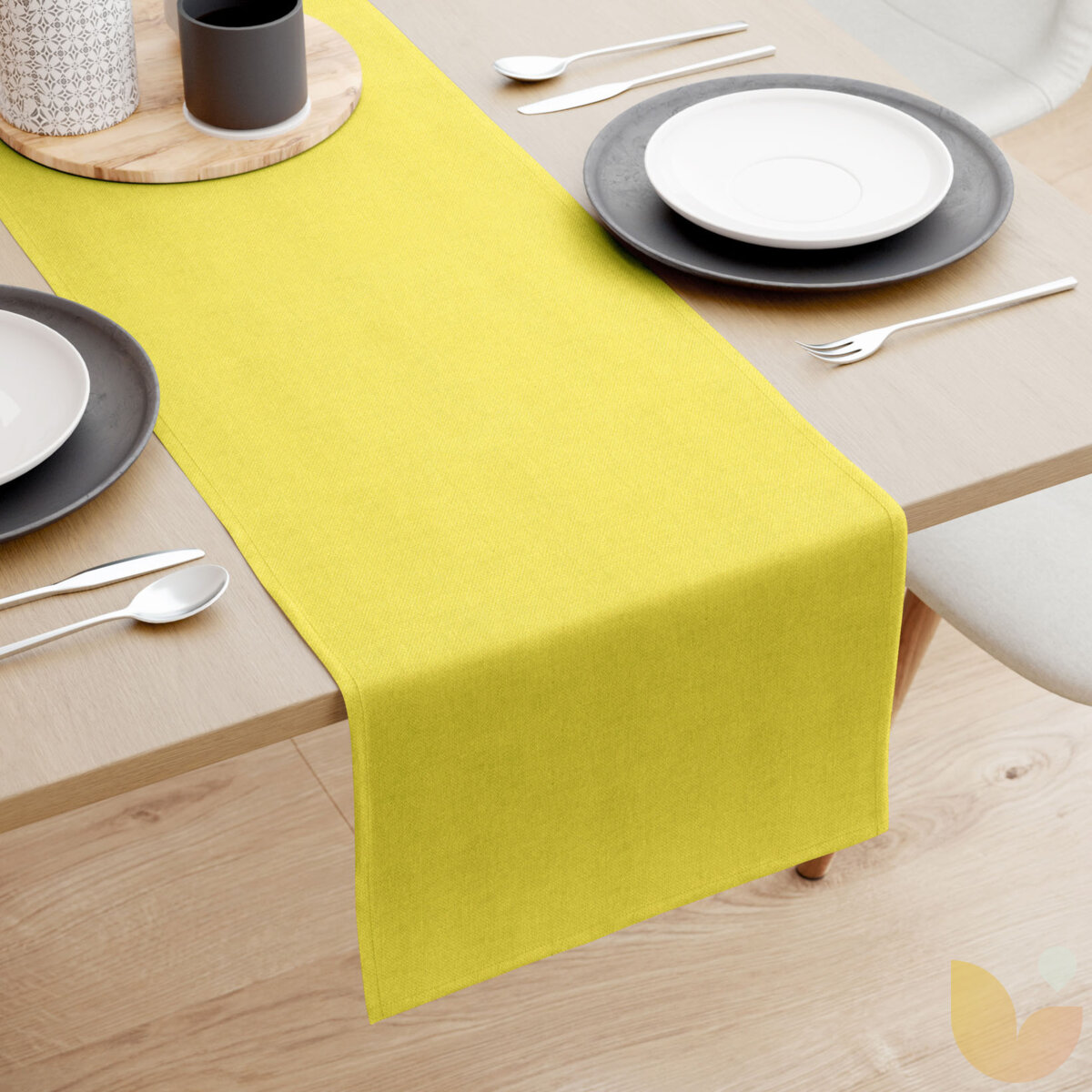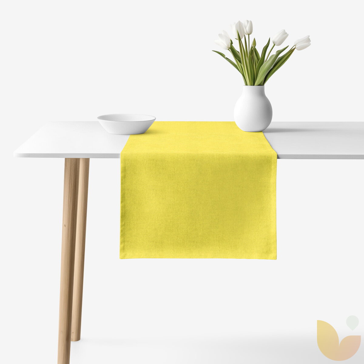Der Stoff besteht aus einer Mischung aus 80 % Baumwolle und 20 % Polyester und hat ein Gewicht von 210 g/m2. Er ist sehr formstabil und passt perfekt auf jeden Tisch. Das Material fühlt sich angenehm an, ist verschleißfest und reißfest.
