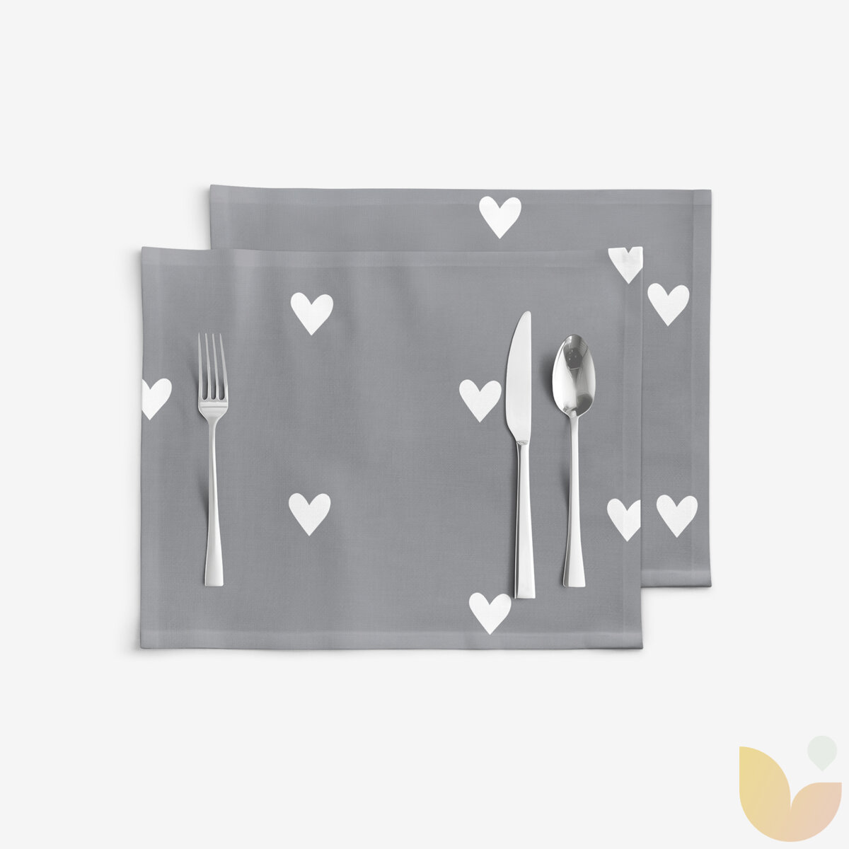 Tischset 100% Baumwolle - Herzchen auf Grau - 2 Stück