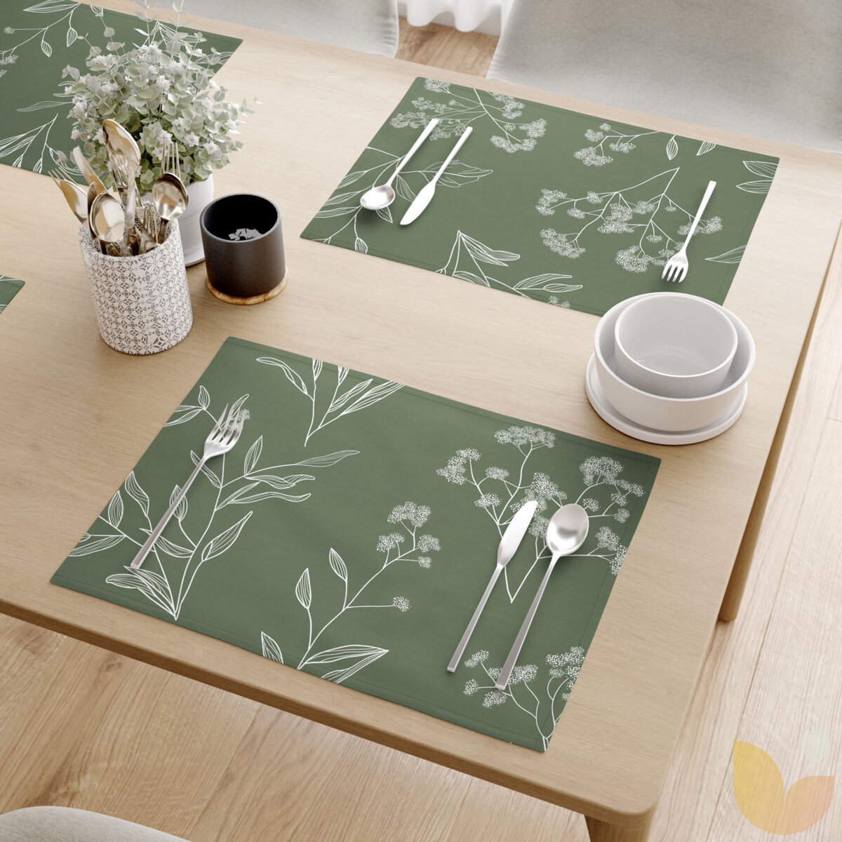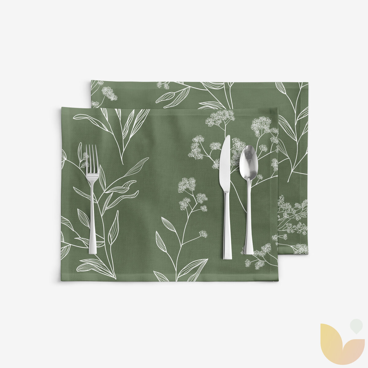 Tischset 100% Baumwolle - Kräuterblätter - 2 Stück