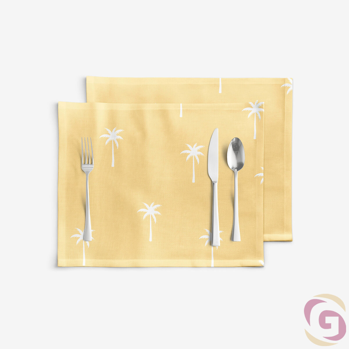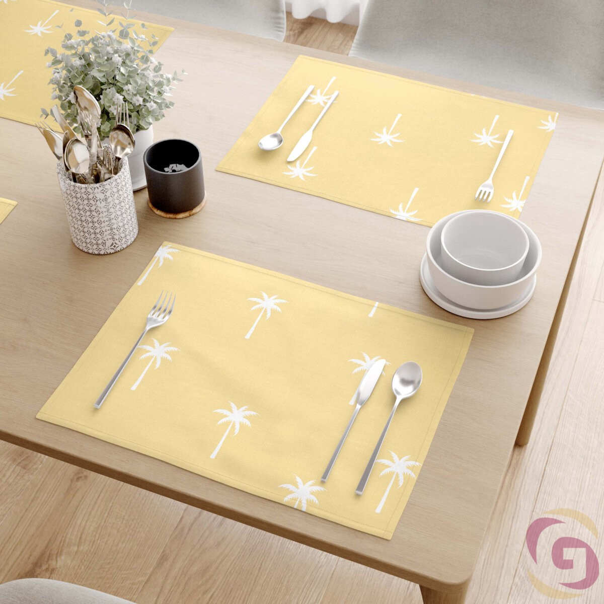 Tischset 100% Baumwolle - Palmen auf Gelb - 2 Stück