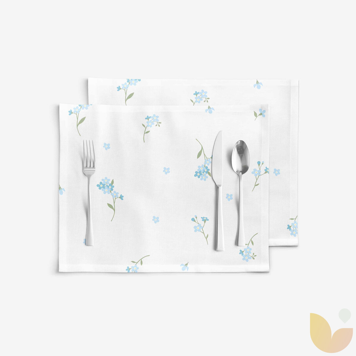 Tischset 100% Baumwolle - Vergissmeinnicht - 2 Stück