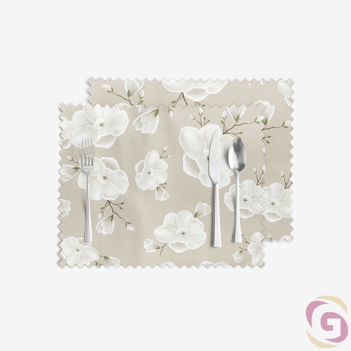 Tischset Teflon - Weiße Blumen - 2 Stück