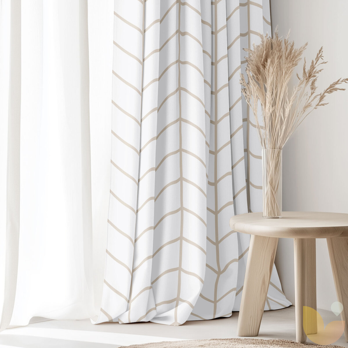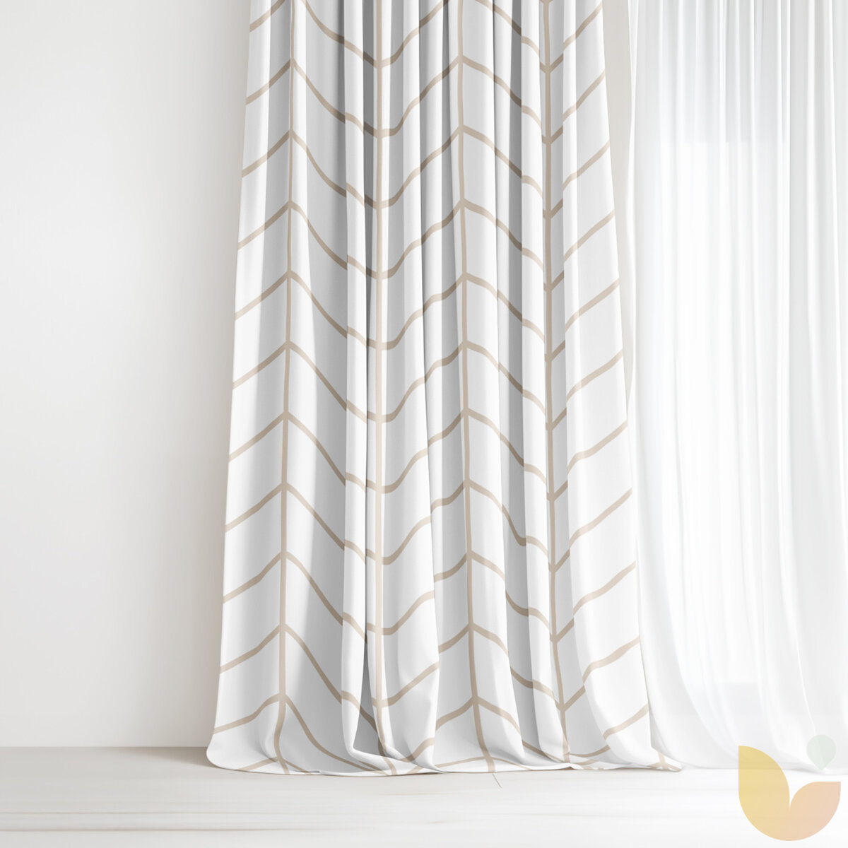 Vorhang aus Baumwolle - Beiger Zickzack auf Weiß