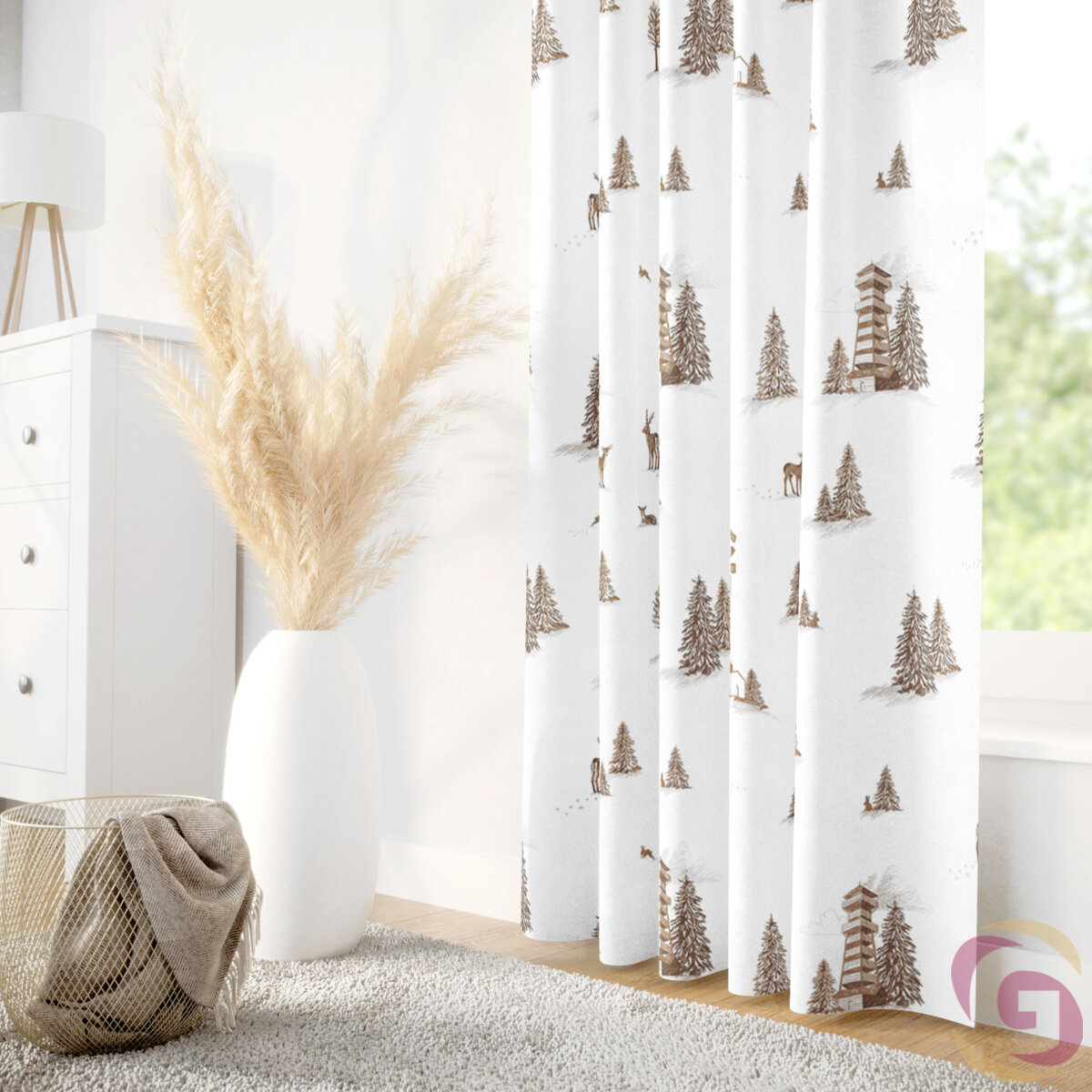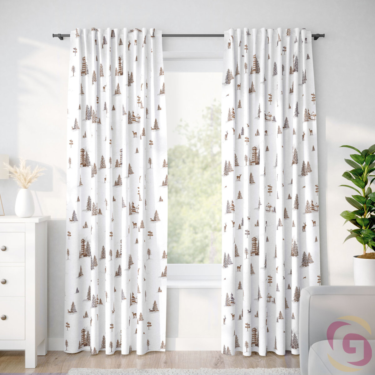 Weihnachtlicher Vorhang aus Baumwolle - Berge