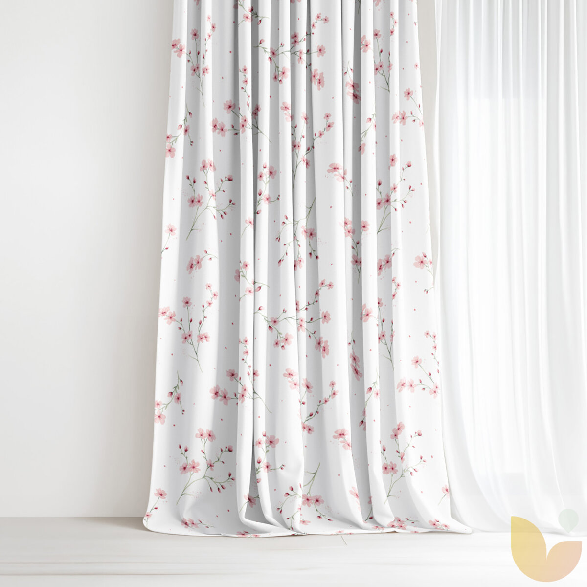 Vorhang aus Baumwolle - Blühende Sakura-Kirschbäume