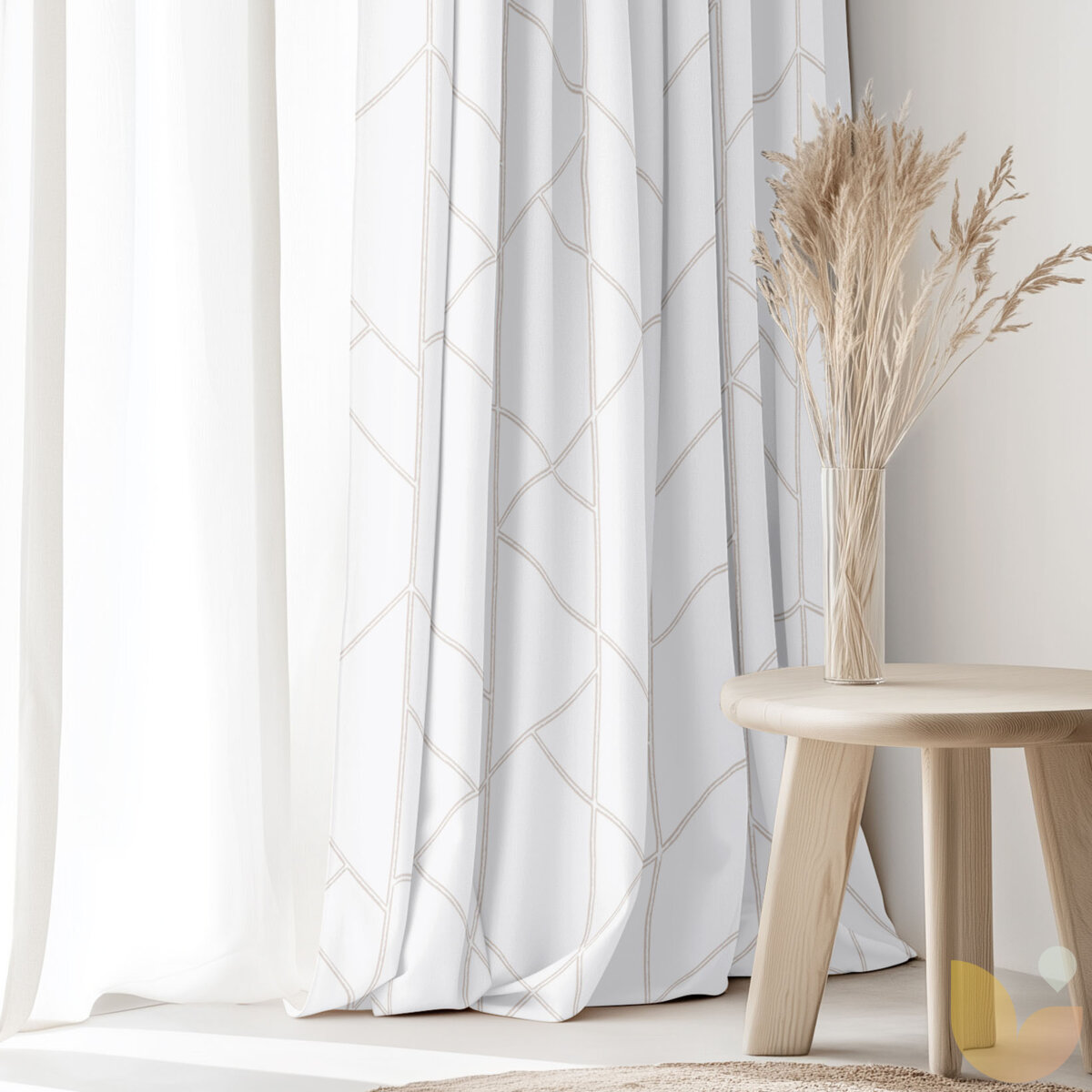 Vorhang aus Baumwolle - Geometrische Linien auf Weiß