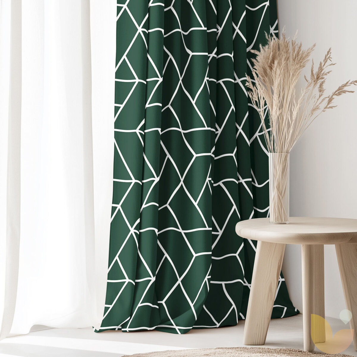 Vorhang aus Baumwolle - Mosaik auf Dunkelgrün