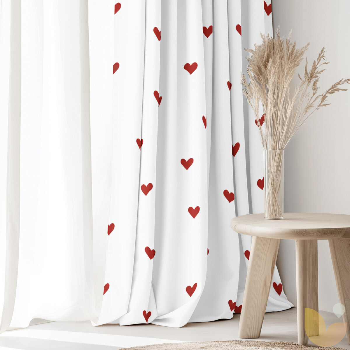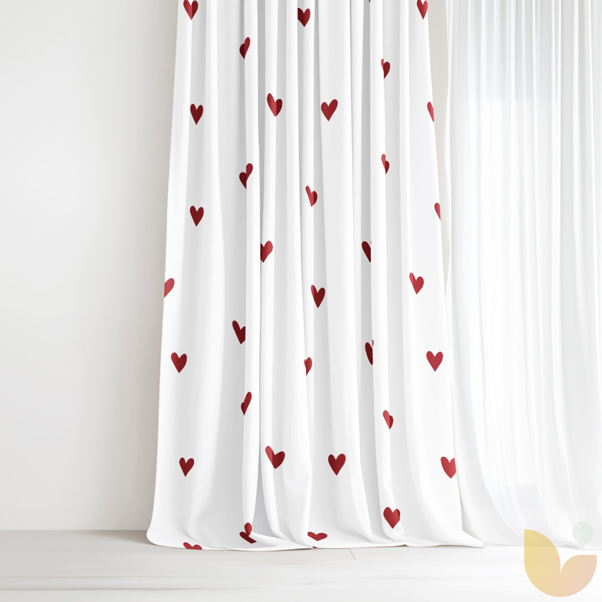 Vorhang aus Baumwolle - Rote Herzchen auf Weiß